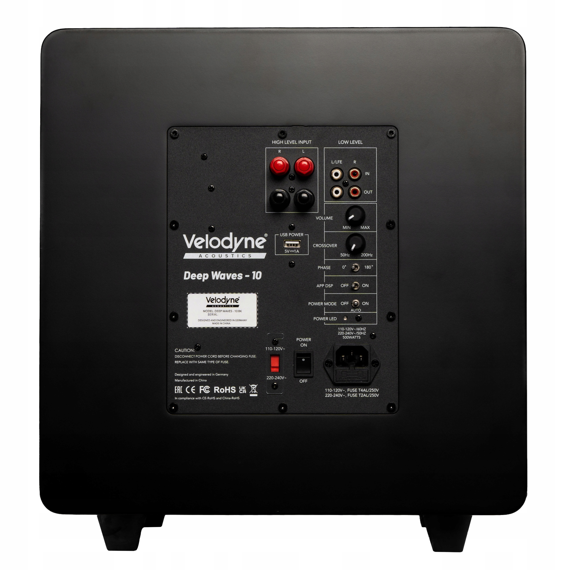 Velodyne Deep Waves 10 (DW-10) to subwoofer zaprojektowany z myślą o naturalnej, głębokiej reprodukcji basu, idealnej zarówno do kin domowych, jak i systemów hi‑fi. Deep Waves 10 posiada konstrukcję zamkniętą z aktywnym przetwornikiem skierowanym do przodu oraz dwoma bocznymi membranami pasywnymi. Urządzenie oferuje solidną moc - zapewnia dynamiczną reprodukcję przy 600W mocy dynamicznej (350W RMS), co gwarantuje pełne, mocne brzmienie niskich tonów. Deep Waves 10 wyposażony jest w zaawansowany system DSP, umożliwiający precyzyjną korekcję akustyczną oraz integrację z aplikacją sterującą, która pozwala na optymalizację parametrów dźwięku i dostosowanie subwoofera do specyfiki pomieszczenia. Jego konstrukcja opiera się na starannie zaprojektowanej obudowie wykonanej z wysokiej jakości MDF, która minimalizuje rezonanse i zapewnia stabilność akustyczną.