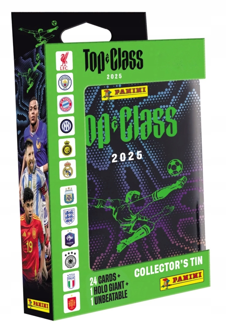 Название MINI PUSZKA KOLEKCJONERA KARTY PIŁKARSKIE DO ALBUMU PANINI FIFA TOP CLASS 2025 3 SASZETKI (24 KARTY) +1 HOLO GIANTS +1 UNBEATABLE PURE FOOTBALL