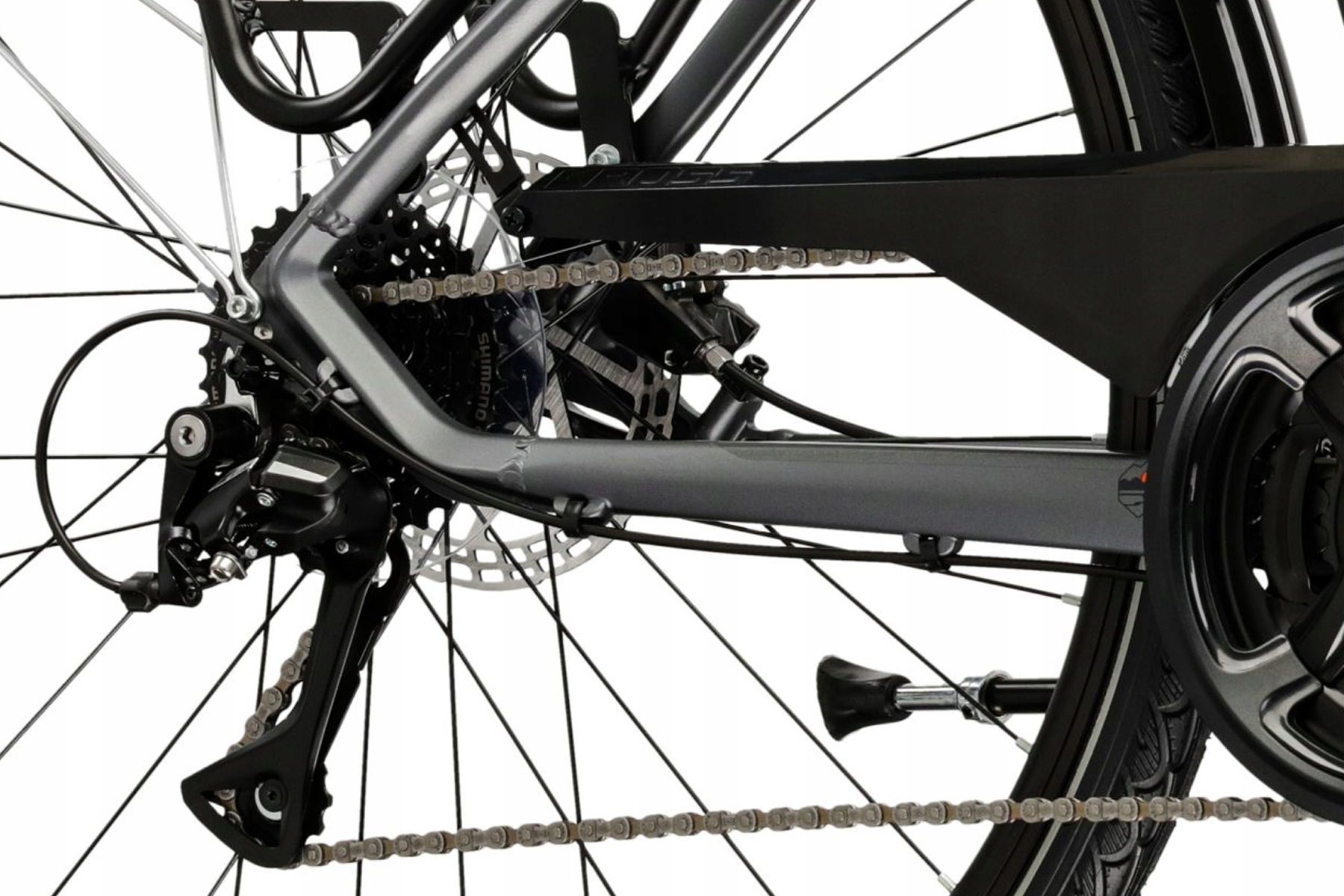 KROSS Trans 4.0 to rower trekkingowy stworzony z myślą o miłośnikach długich wypraw i komfortowej jazdy w zróżnicowanym terenie. Jego aluminiowa rama zapewnia lekkość i wytrzymałość, a amortyzowany widelec Suntour Nex DS o skoku 63mm niweluje nierówności, gwarantując płynną jazdę. Napęd Shimano z szerokim zakresem przełożeń umożliwia pokonywanie stromych podjazdów i szybką jazdę po płaskich odcinkach. Hydrauliczne hamulce tarczowe Shimano MT200 zapewniają pewne i skuteczne hamowanie w każdych warunkach pogodowych. Wytrzymałe koła 28 cali z oponami Wanda P1134 o niskim oporze toczenia pozwalają na dynamiczną jazdę i pokonywanie długich dystansów.