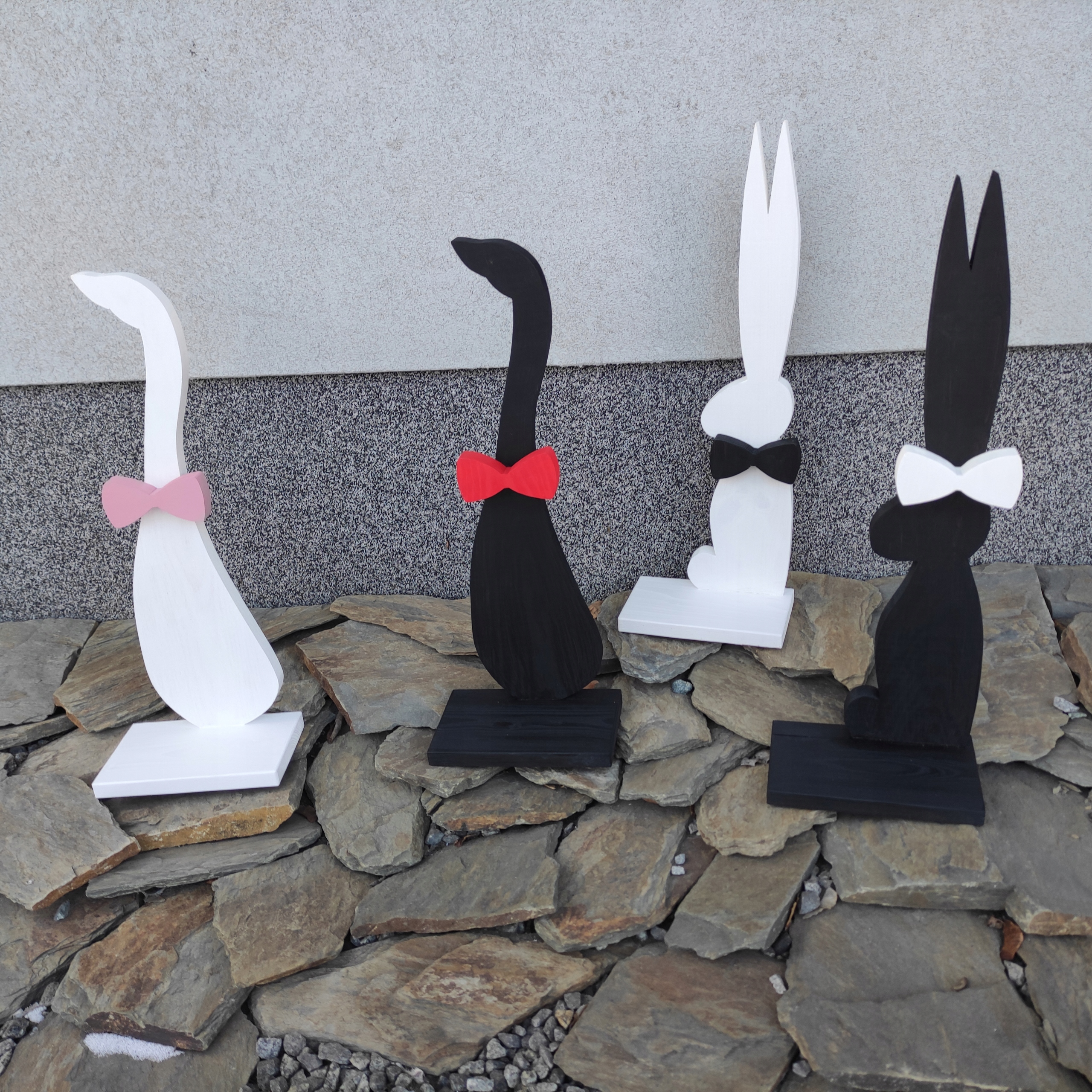 Produkt wykonany z desek czterostronnie heblowanych o grubości 2cm. Gąska pomalowana na kolor czarny, kokardka malowana na kolor dostępny z 11. Klejony, skręcany wkrętami.