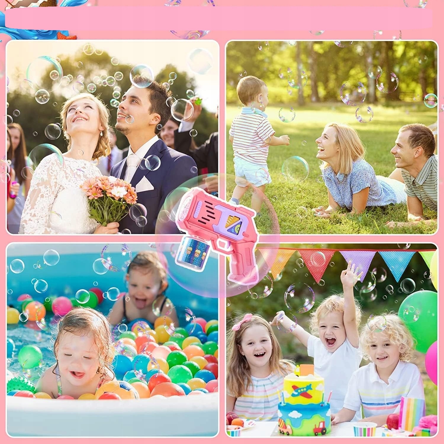 Pistolet został wyposażony w aż 10 otworów, przez które będą przelatywać bańki, dzięki czemu będzie ich naprawdę mnóstwo. Będziesz w stanie stworzyć ścianę z baniek! To świetna zabawka dla dzieci w każdym wieku. Świetnie sprawdzi się również jako dodatek imprezowy na urodziny!