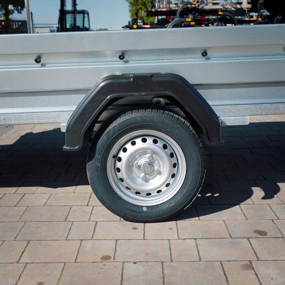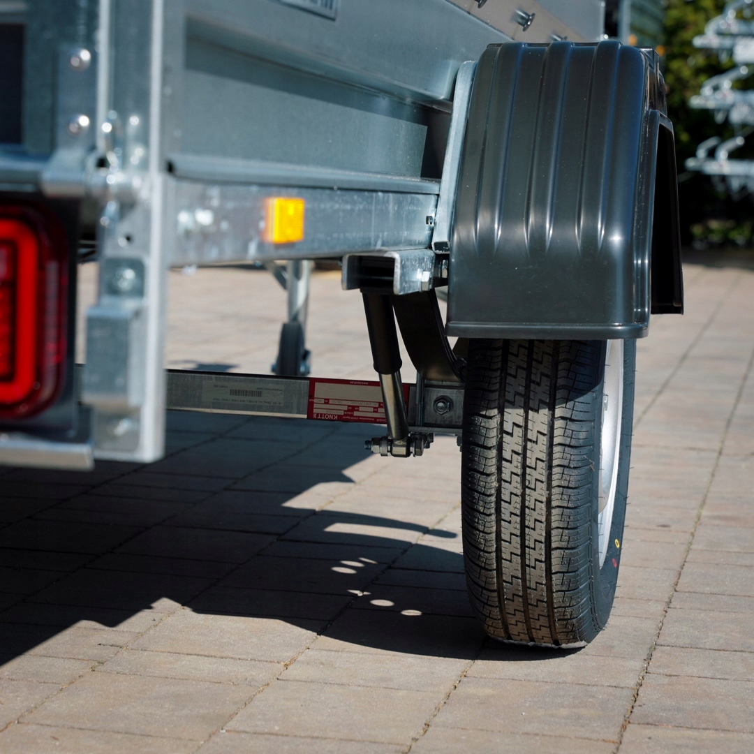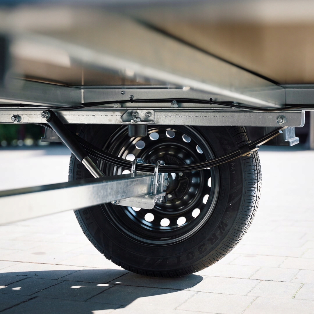 Przyczepy towarowe Zasław to nowoczesna linia przyczep samochodowych wykonanych z najlepszych dostępnych na polskim rynku materiałów. Produkty tej kategorii charakteryzuje m.in.: nowoczesny design burt walcowanych na zimno, wytrzymałe zaczepy burtowe z kompensacją oraz dyszel prowadzony od osi dla większej wytrzymałości konstrukcji. Wszystkie elementy ram cynkowane są ogniowo, co gwarantuje ich trwałość i dużą odporność na korozję. W przyczepie 265SR stosujemy zawieszenie oparte o resory. Dwa resory 3-piórowe i amortyzatory.