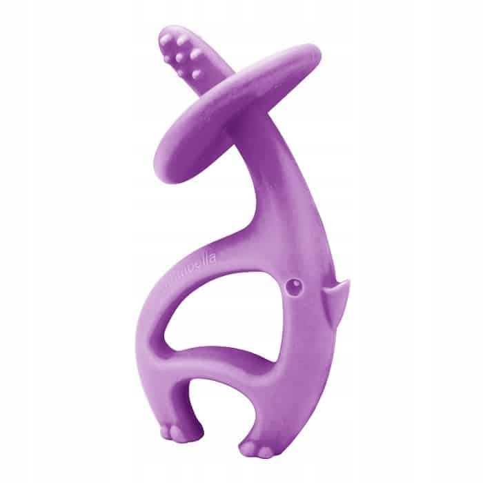 Mombella Gryzak dla dzieci słonik fioletowy to miękki gryzak został zaprojektowany tak aby łagodzić ból podczas ząbkowania oraz delikatnie masować dziąsła.