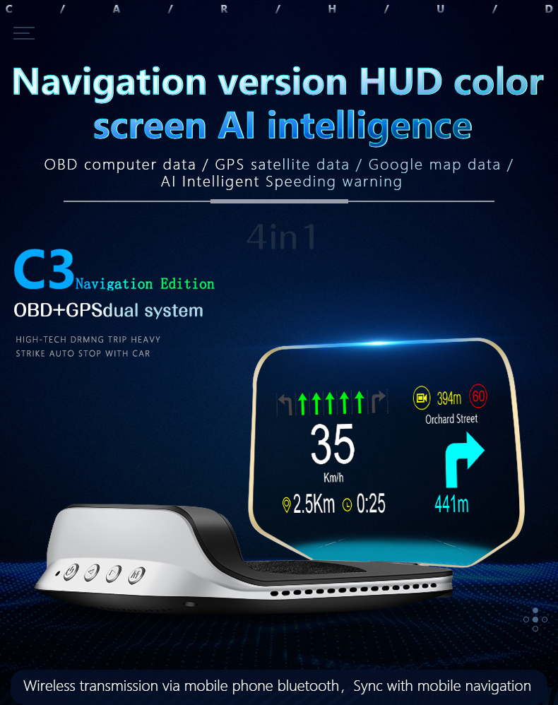 Nasze urządzenie łączy w sobie wiele funkcji, które pomagają monitorować kluczowe parametry pojazdu w czasie rzeczywistym, wyświetlając dane bezpośrednio na przedniej szybie samochodu.