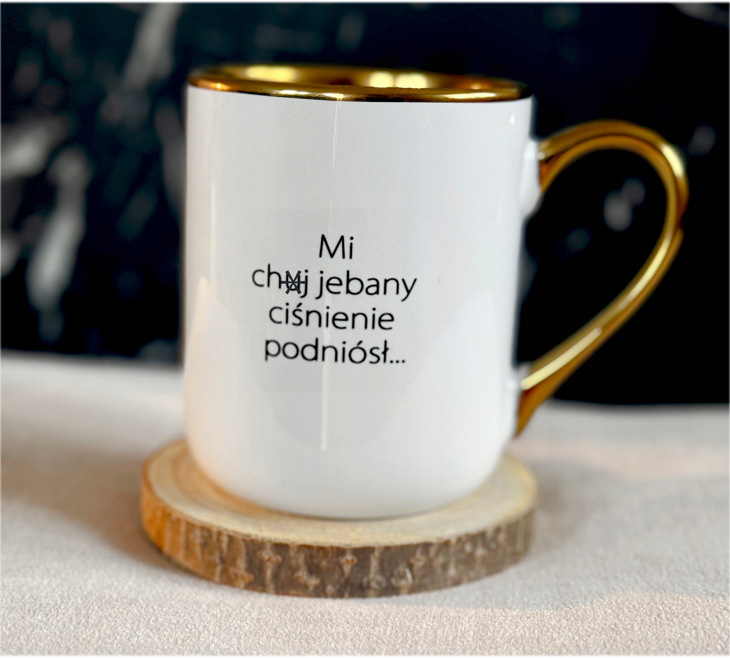 Niepowtarzalny kubek wykonany z wysokiej jakości ceramiki oraz złotymi elementami.