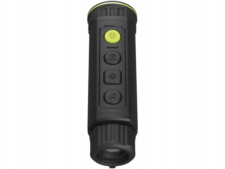Obudowa posiada ogółem sześć elementów sterujących. Cztery spośród nich znajdują się w górnej części monokularu, co umożliwia łatwe dostosowanie. Przycisk włączania/wyłączania, przycisk rejestrowania zdjęć i filmów, do zmiany trybów kolorów i przybliżania cyfrowego sprawiają, że termowizor jest prosty w obsłudze i jednocześnie doskonale nadaje się do pracy w terenie.
