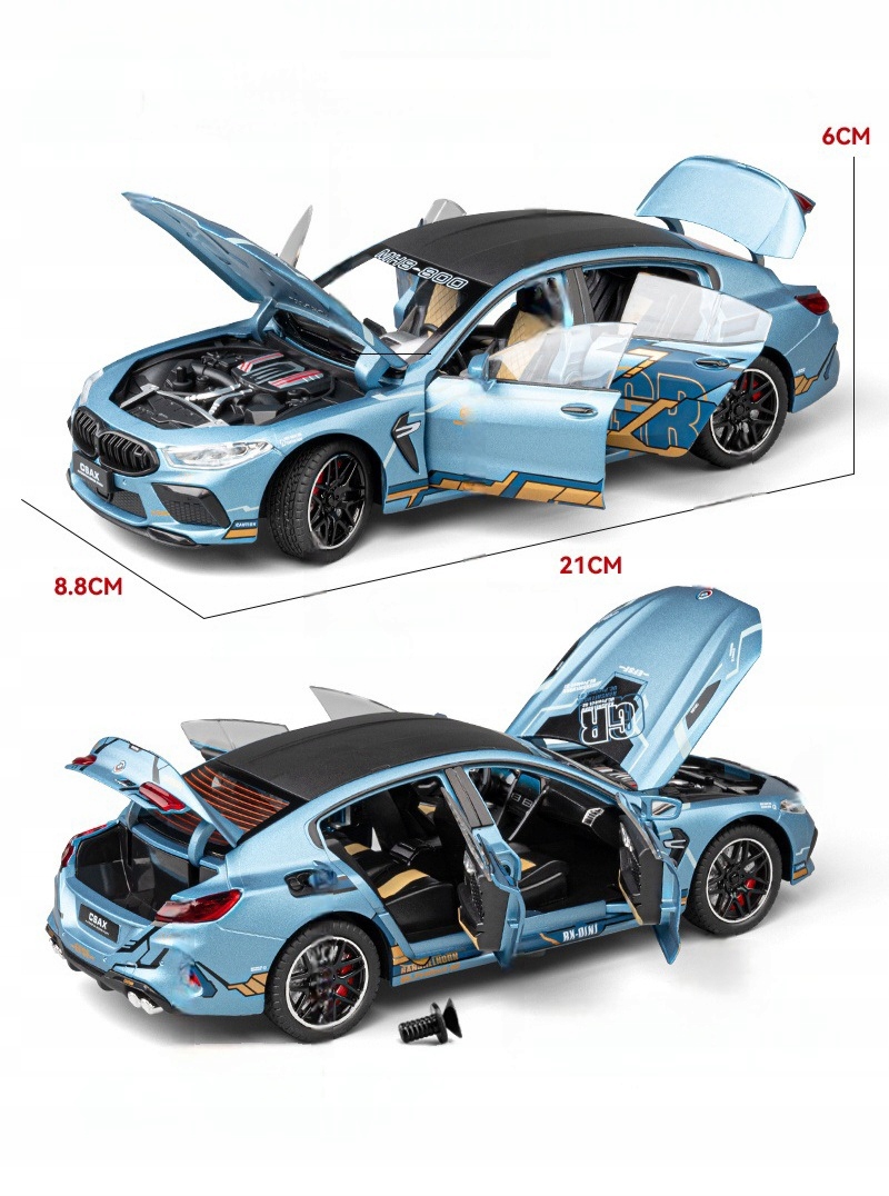 Opis Produktu: Przedstawiamy wyjątkowy model metalowy BMW MH8 800 Manhart w skali 1:24, który zachwyci każdego miłośnika motoryzacji. Ten precyzyjnie wykonany model oferuje szereg realistycznych funkcji, które sprawiają, że jest on nie tylko ozdobą, ale także interaktywną zabawką.