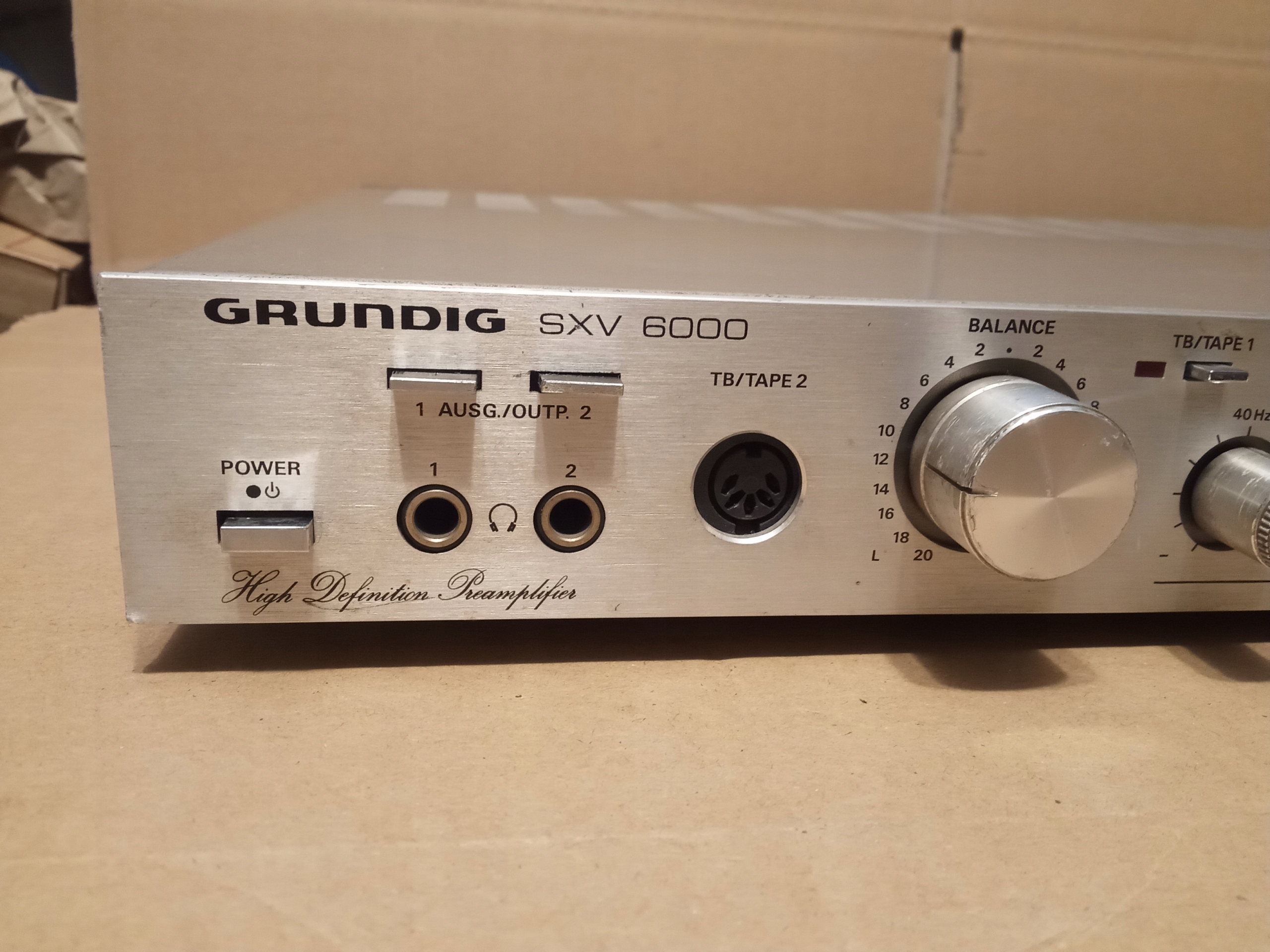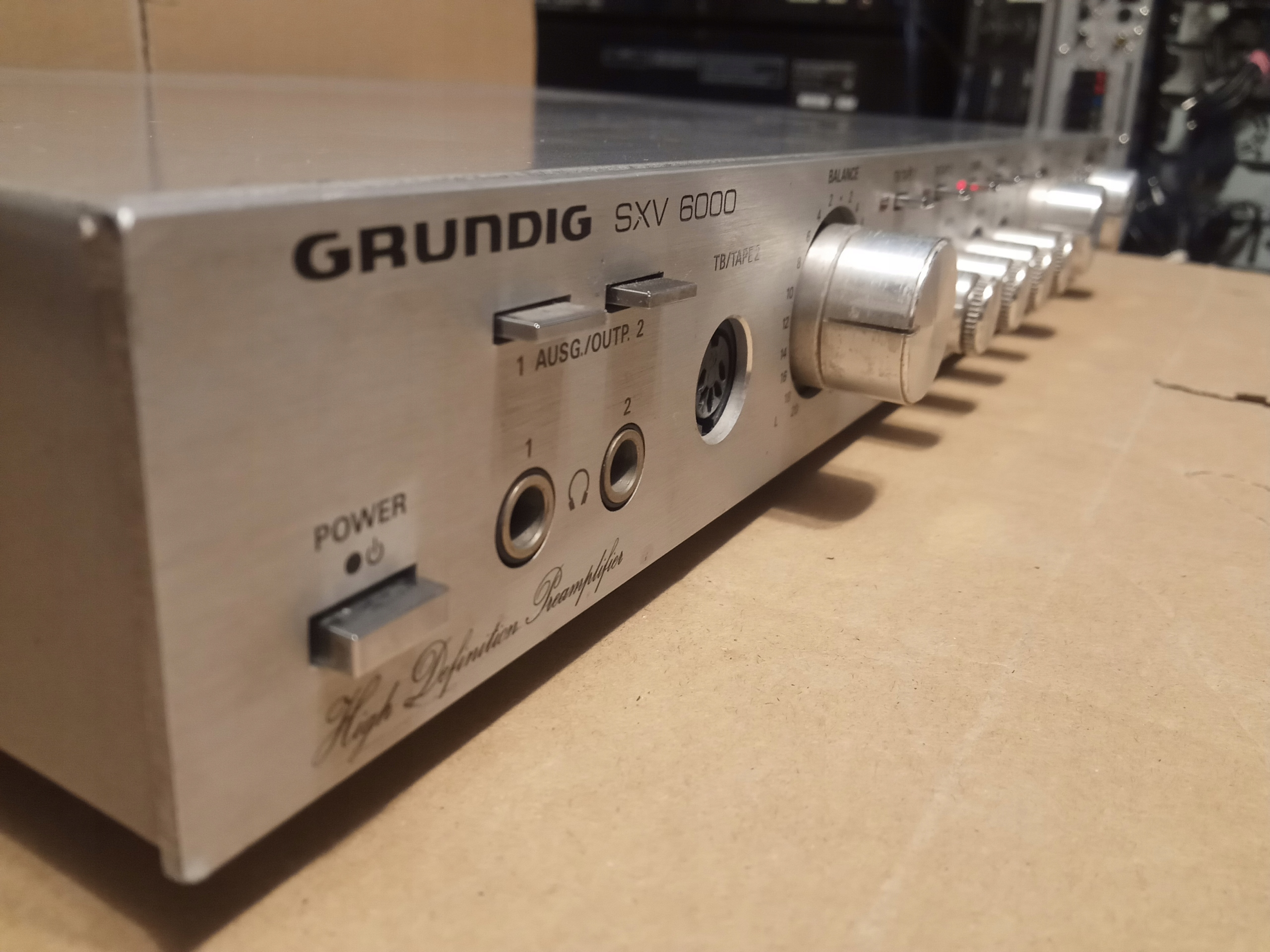 Przedwzmacniacz z początku lat 80-tych : GRUNDIG SXV-6000 ( słychać w słuchawkach delikatne buczenie i dopiero po zgłośnieniu maksymalnym zaczyna być słychać dzwięk ! ) .