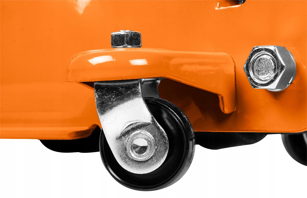 Podnośnik został wyposażony w cztery kółka, z czego dwa są skrętne, co ułatwia manewrowanie i ustawienie podnośnika w dogodnym miejscu. Ergonomiczny uchwyt transportowy pozwala na szybkie i wygodne przenoszenie urządzenia, a niewielka masa własna (12,5 kg) czyni go niezwykle poręcznym i mobilnym.
