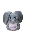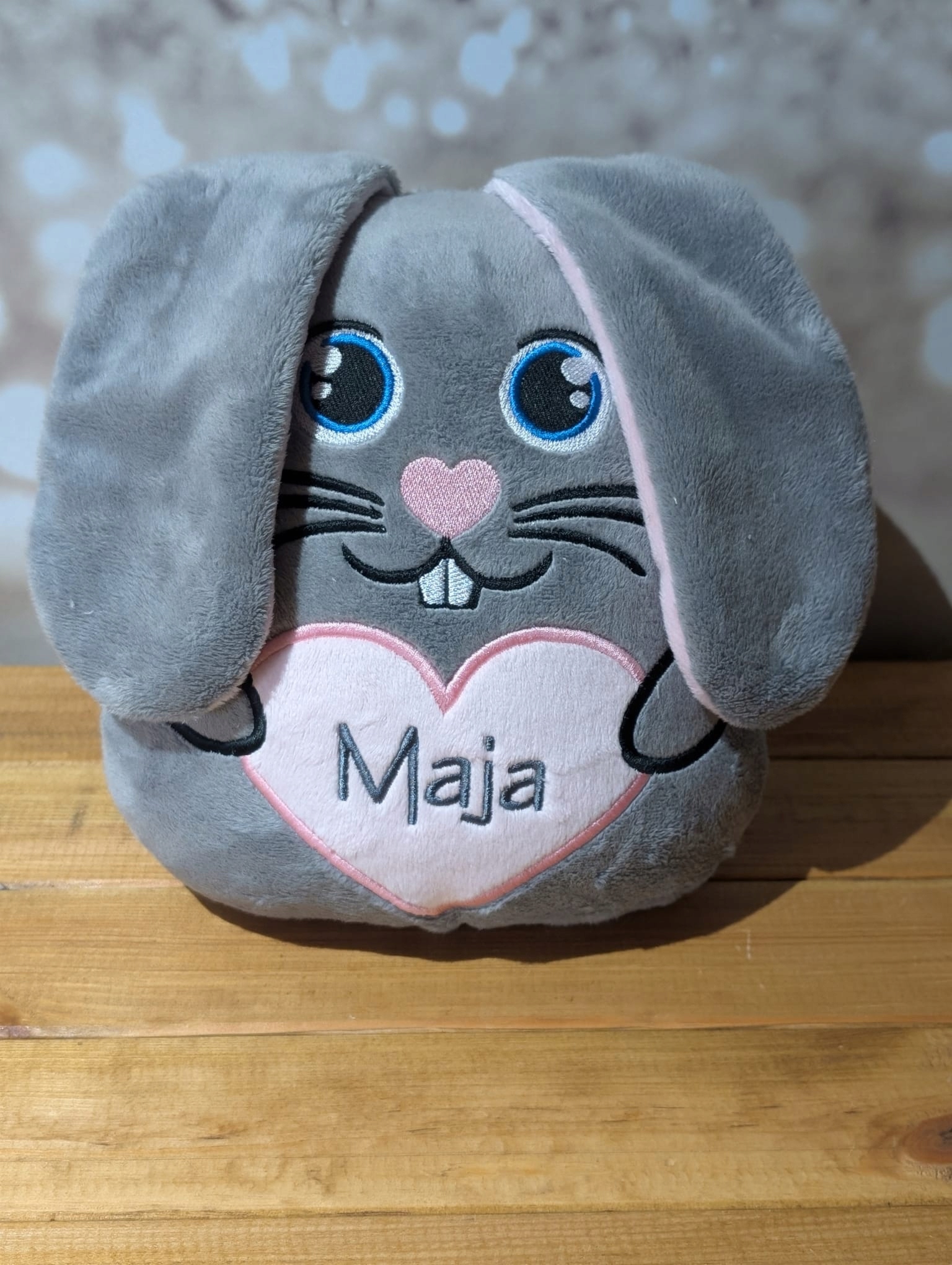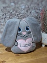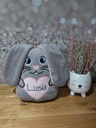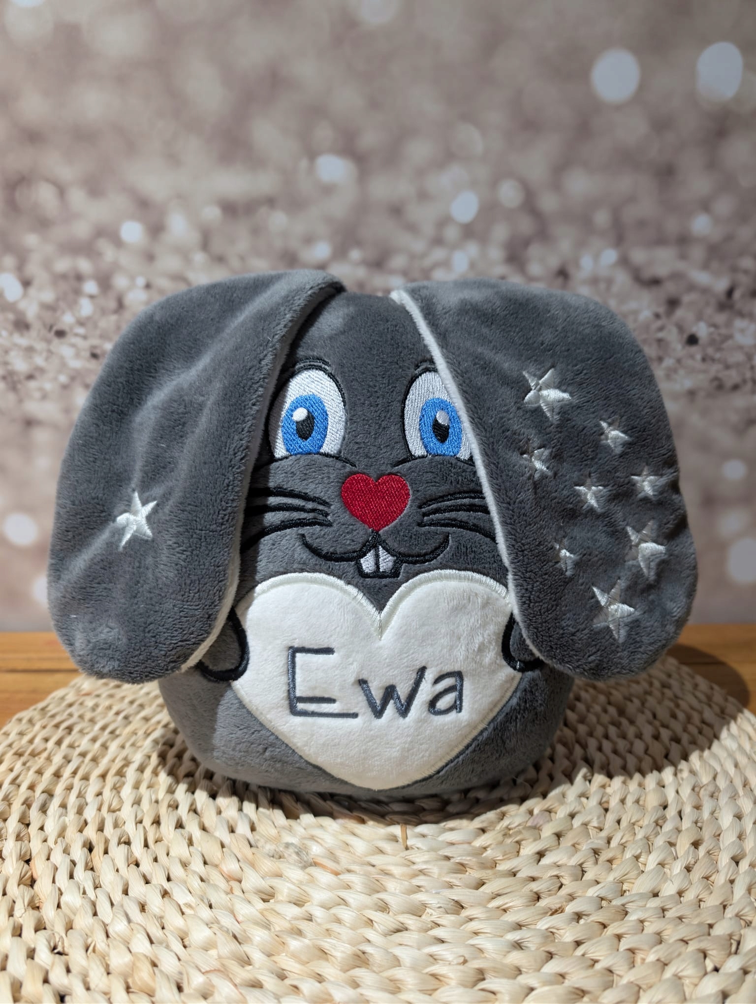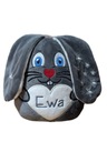 Zajączek ma na sobie haftowane imię dziecka, co nadaje mu wyjątkowego charakteru i sprawia, że jest on jedyny w swoim rodzaju. Personalizacja sprawia, że staje się niezapomnianym prezentem – to upominek, który pozostanie z dzieckiem na długie lata jako cenna pamiątka z dzieciństwa. Taki spersonalizowany zając będzie idealnym wyborem na święta wielkanocne,chrzest, narodziny, urodziny lub każdą inną wyjątkową okazję.