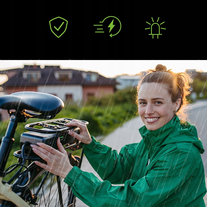Dzięki wtyczce 5.5*2.1 mm, kompaktowym rozmiarom i wodoodpornej obudowie (IP54) – możesz ładować swój e-bike niemal wszędzie.