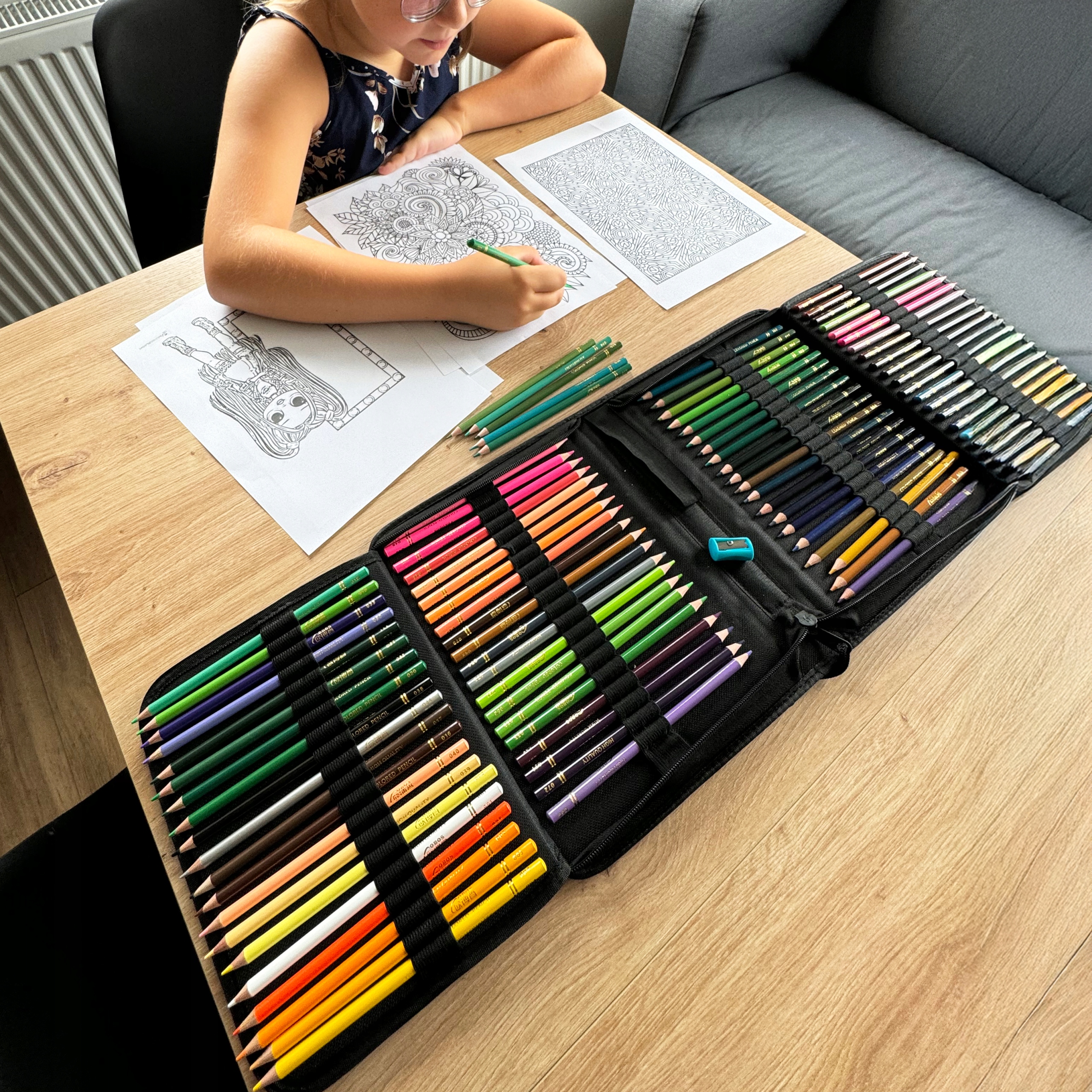 Zestaw zawiera aż 120 intensywnie napigmentowanych kredek, które umożliwiają tworzenie zarówno precyzyjnych detali, jak i szerokich, kolorowych powierzchni.