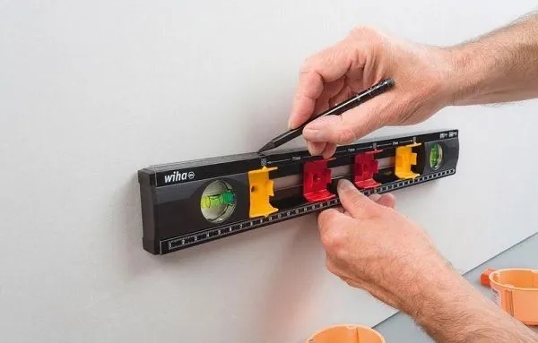 Upraszcza pracę: Wygodne wymiarowanie z różnych pozycji pracy dzięki zastosowaniu skal, nawet przy widoku z góry. Oszczędność miejsca: Idealna mobilność, pasuje do walizki Wiha. Oszczędność czasu: Wymienne oznaczenie odległości do 4 puszek podtynkowych. Zwiększa ich wydajność: Doskonała możliwość przewidywalności obu libelli nawet przy ostrym świetle. Zastosowanie: Do pomiaru poziomego i pionowego oraz oznaczania odległości puszek podtynkowych. Zwłaszcza podczas instalacji gniazd w podłodze, elektrycy często mają trudności z podglądaniem libella na poziomicy. Ponadto podczas rysowania powstają często niepiękne nacięcia z powodu zagłębionych libelli. Z tymi problemami elektrycy firmy Wiha mają teraz kres. Nawet przy ostrym kącie widzenia zapewnia idealny wgląd w libelle. Ponadto poziomica dzięki ciągłej obudowie umożliwia nieprzerwany rysowanie linii. Wyrafinowany skal pozwala na komfortowe wymiarowanie nawet przy widoku z góry. Kolejną zaletą instalacji elektrycznej są zmienne oznaczenia odległości do 4 puszek podtynkowych. Dzięki regulowanym punktom do oznaczania puszek, poziomica może być dostosowana do poszczególnych odległości oznaczania, a tym samym może być używana na wiele różnych sposobów i w skali międzynarodowej. Dzięki kompaktowej formie poziomica idealnie nadaje się do zastosowań mobilnych i może być wygodnie schowana w walizce dla elektryków Wiha.