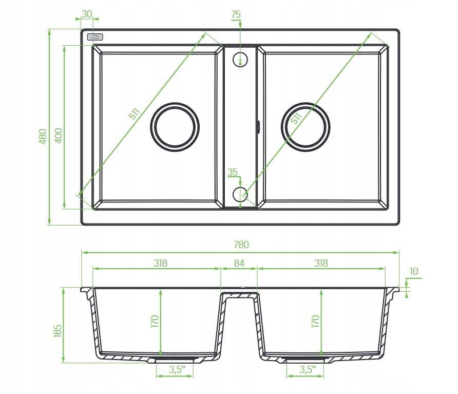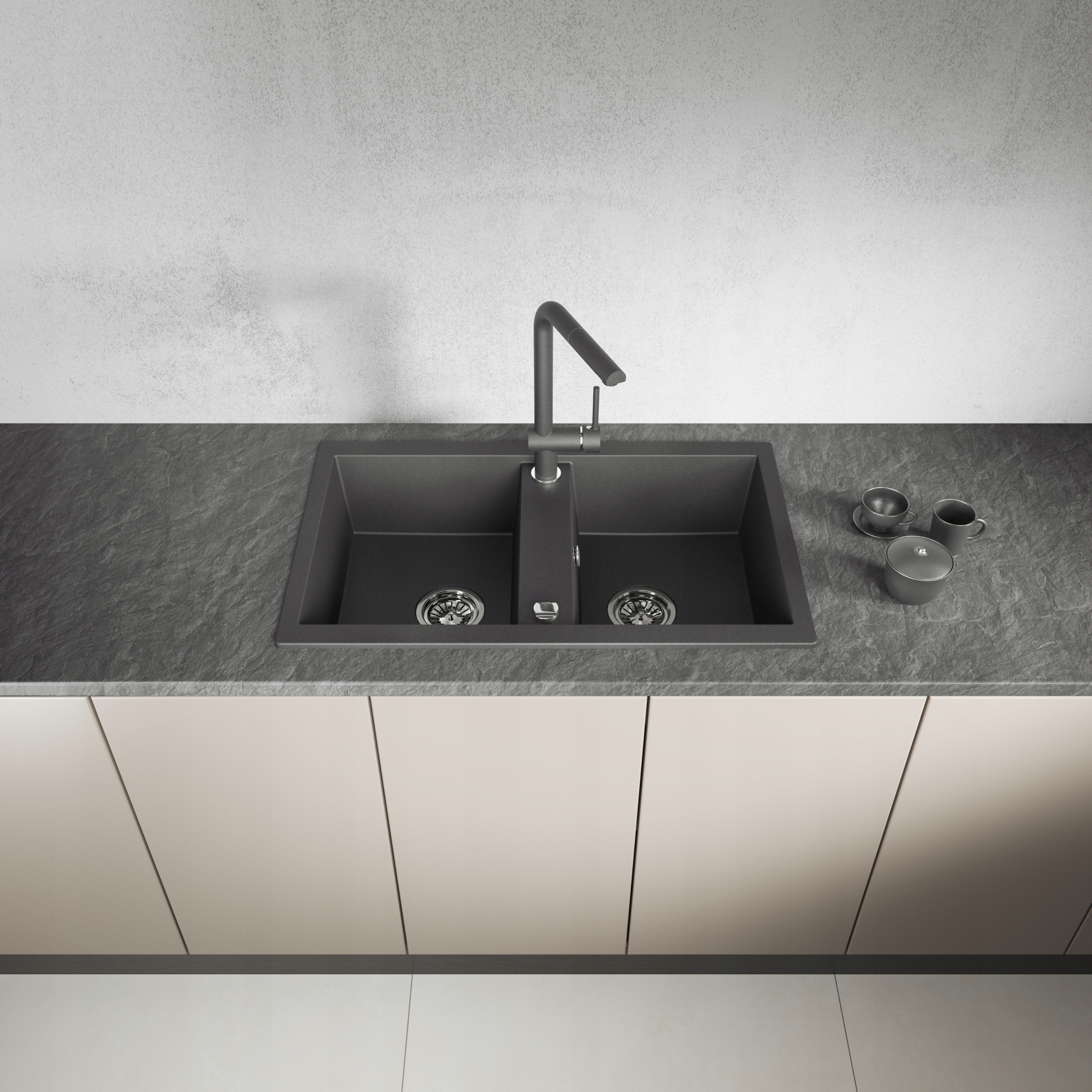 ✅ Posiada wygodne automatyczne zamknięcie odpływu w postaci korka umieszczonego na przodzie zlewozmywaka.