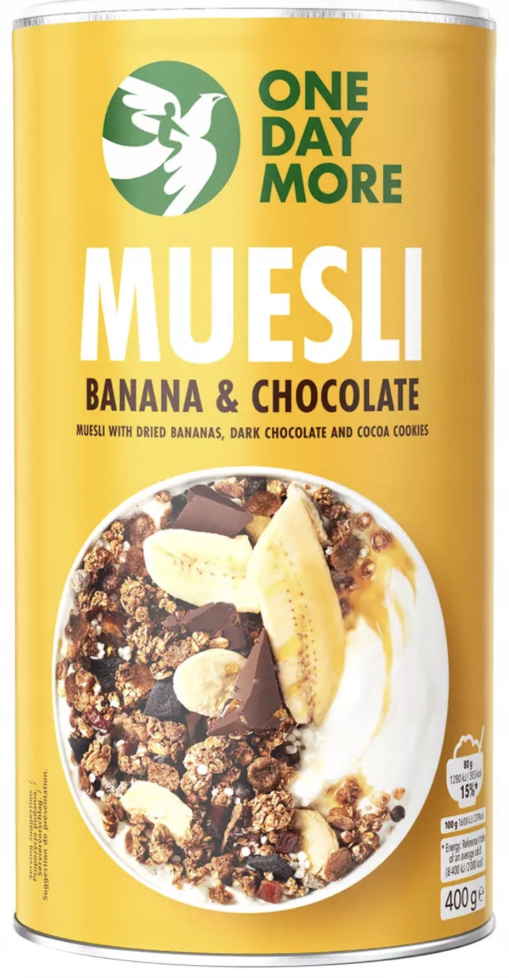 Są połączenia smakowe, które stanowią klasykę – tak właśnie jest w przypadku banana i czekolady. Zacznij dzień od pożywnego musli, które przyjemnie chrupie dzięki obecności ciasteczek czekoladowych i płatków kukurydzianych z kakao.