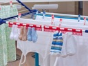 Suszarka Pegasus 160 Solid Slim jest praktyczna i zapewnia pełną wygodę suszenia. Na bocznych, składanych skrzydłach jest dużo miejsca na większe i małe ubrania, a tak małe jak np. skarpetki można zawiesić na uchwytach na drobną garderobę, dzięki czemu zajmą niewiele miejsca. Jej szerokość wynosi zaledwie 55 cm, więc również po rozłożeniu zmieści się w każdym mieszkaniu i na balkonie, a w przypadku nagłego deszczu łatwo ją można przenieść do suchego pomieszczenia. Dzięki dwóm antypoślizgowym nóżkom jest odporna na wiatr i stoi stabilnie na balkonie, w ogrodzie lub na płaskiej podłodze w mieszkaniu. Oba boczne skrzydła zwiększają jej powierzchnię suszenia do 16 metrów, dzięki czemu można jednocześnie powiesić na niej zawartość ok. dwóch wsadów pralki. Długie ubrania doskonale wyschną na skrzydłach o wysokości 1,05 metra. Suszarka stojąca Pegasus 160 Solid Slim posiada dwa uchwyty na drobną garderobę, które można zamocować na ramie suszarki i zawiesić na nich skarpetki, chusteczki czy bieliznę osobistą, bez konieczności użycia spinaczy. Wystarczy je wpiąć i gotowe. Po złożeniu suszarkę można przechowywać na płasko. W pełni nierdzewna.