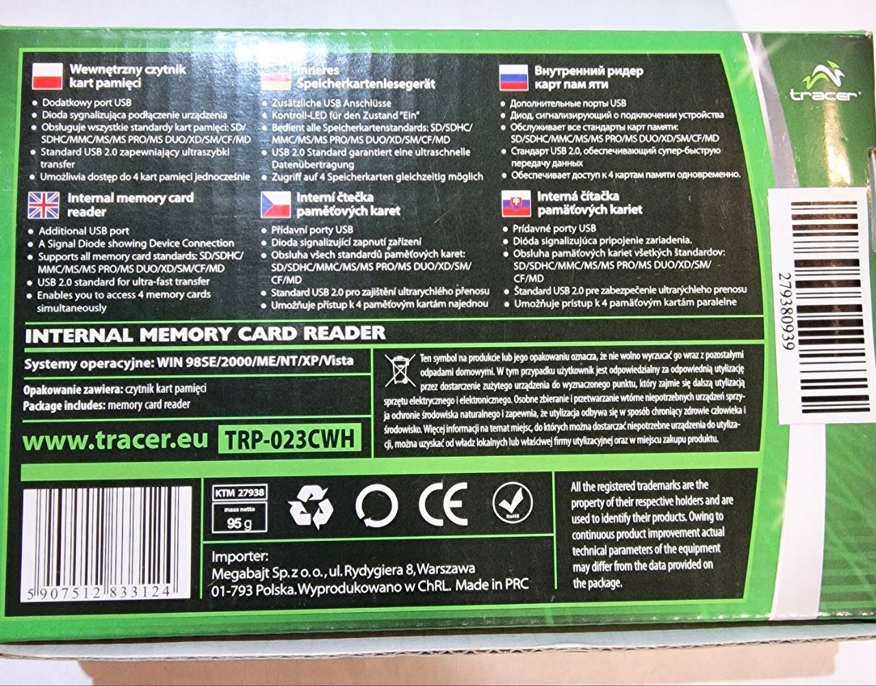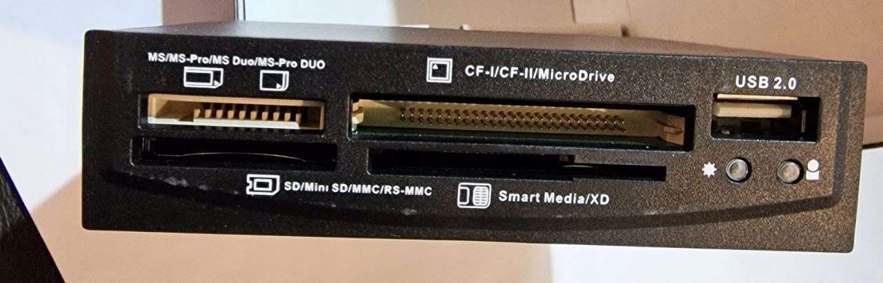 czytnik należy umieścić w wolnej kieszeni 3,5" w komputerze i podłączyć kabel USB z czytnika do odpowiedniego portu USB na płycie głównej - system powinien automatycznie wykryć i zainstalować urządzenie