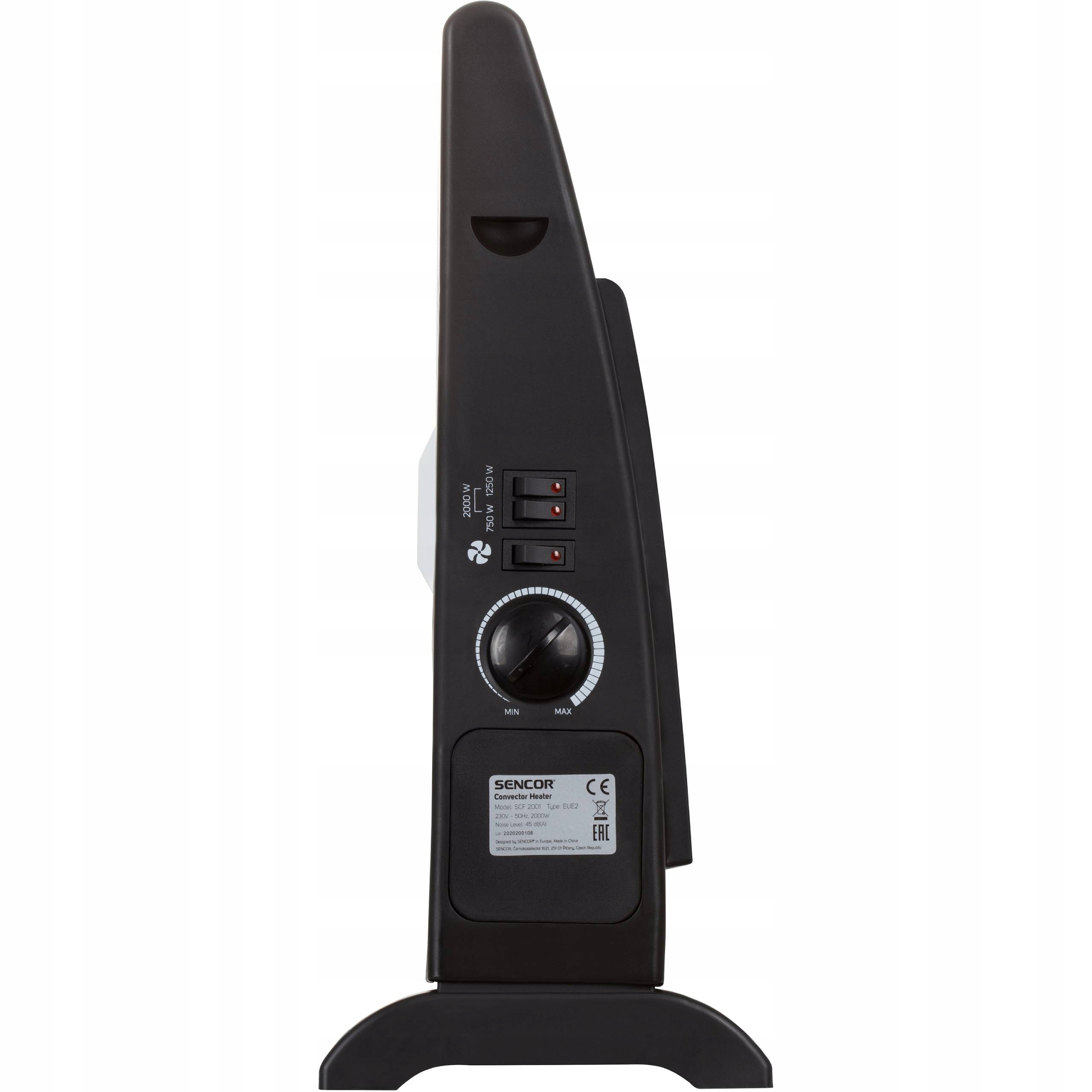 Ogrzewacz elektryczny Sencor SCF 2001 generuje moc na poziomie 2000 W. Wyposażany jest w trójstopniową regulację poziomu mocy grzania oraz termostat, który płynnie zarządza regulacją temperatury. Wbudowany wentylator zapewnia ochronę przed przegrzaniem i wpływa na jeszcze bardziej optymalną pracę urządzenia.
