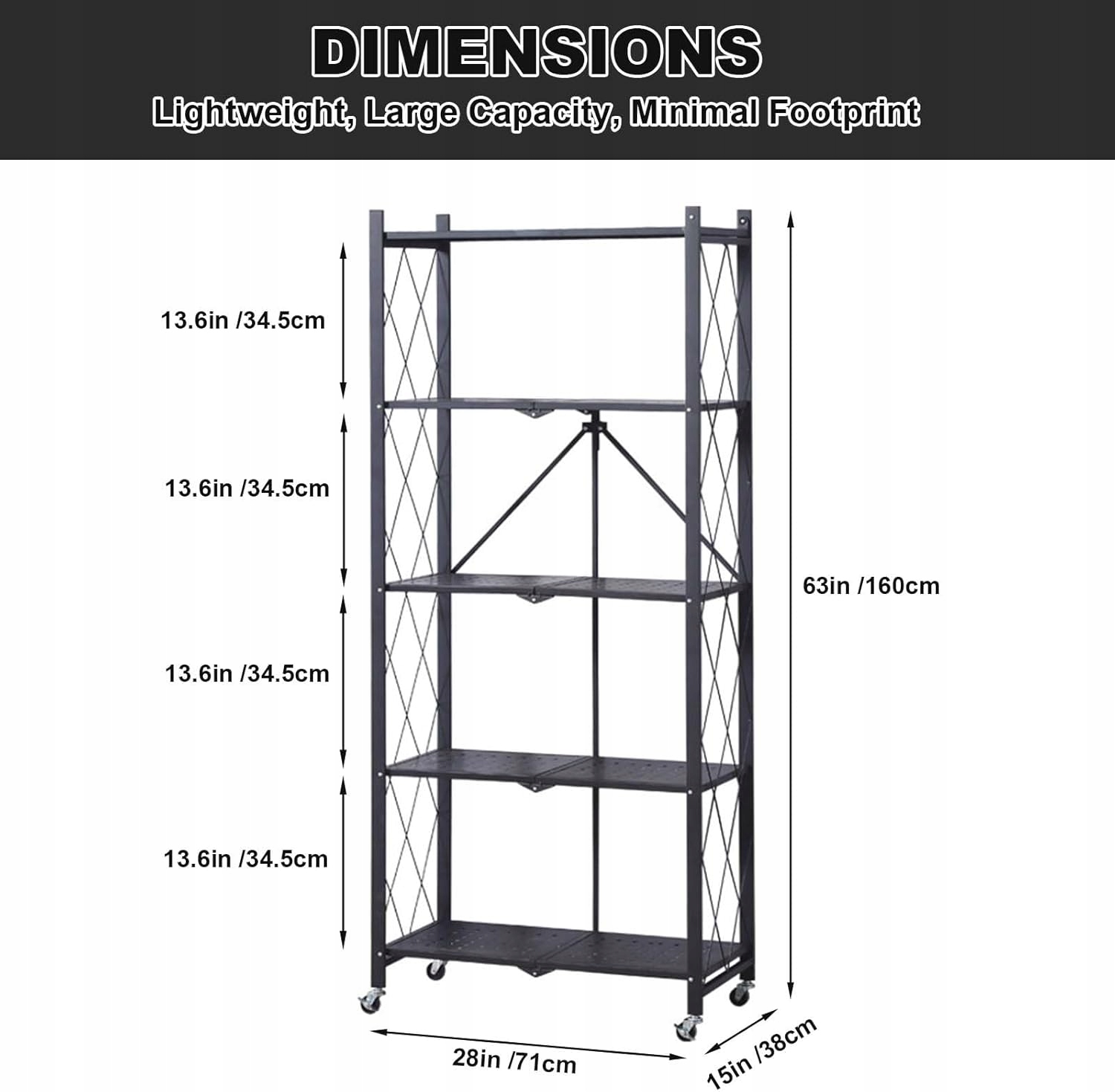 Wielozadaniowe składane półki: ten metalowy regał może być używany prawie wszędzie w kuchni, salonie, biurze, spiżarni, garażu, pralni itp. Idealny do przechowywania narzędzi, ubrań, książek i wszystkiego, co zajmuje miejsce w domu lub firmie.