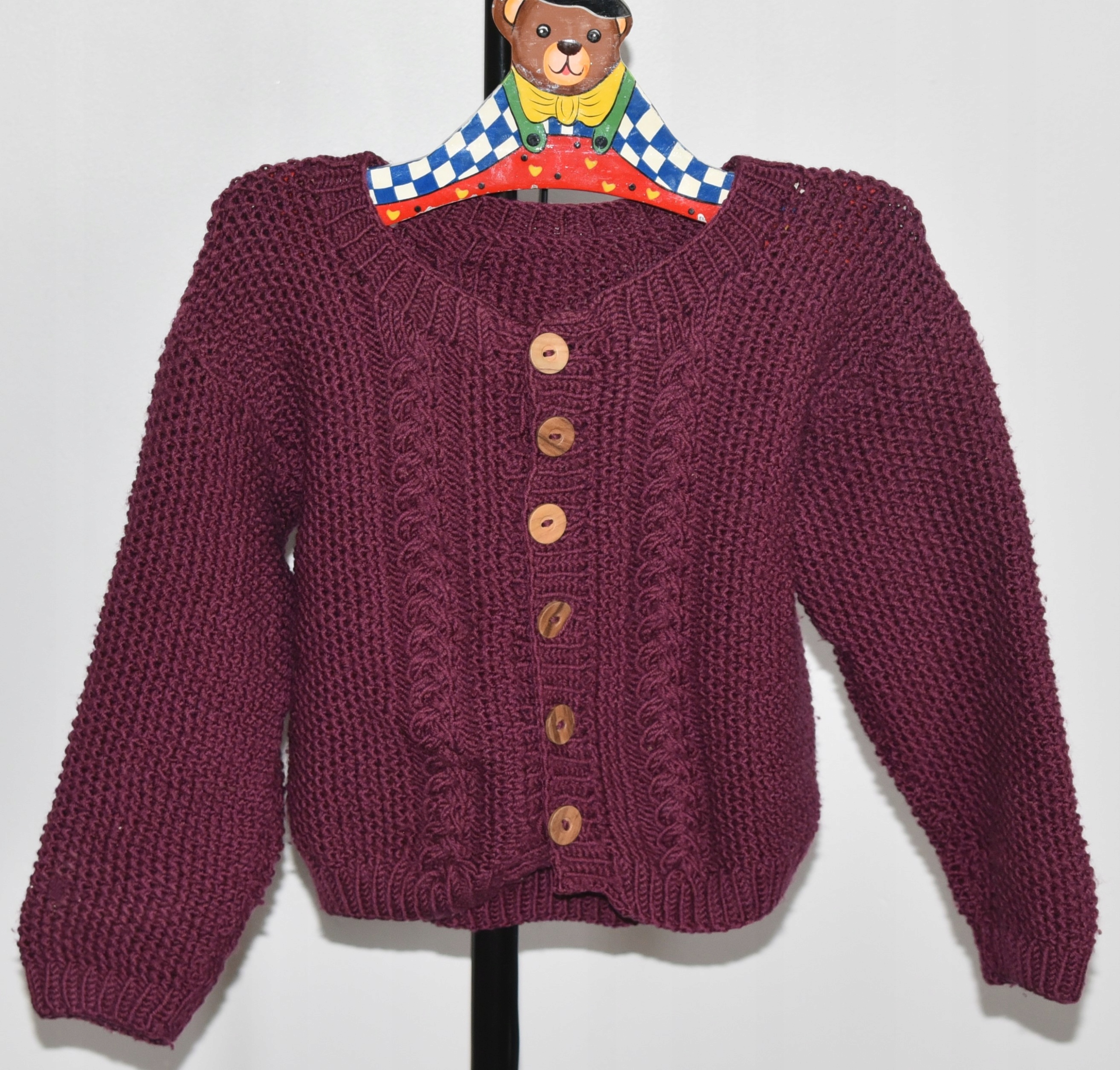 SWETEREK Z WEŁENKI MERINO WYGLĄDA NA RĘCZNIE ROBIONY , BRAK METEK . DŁUGOŚĆ OD RAMIENIA 33 CM , DŁUGOŚĆ RĘKAWA OD PASZKI 27 CM , SZEROKOŚĆ W KLATCE 2 X 35 CM . STAN BARDZO DOBRY . ZAPRASZAM DO ZAKUPU .