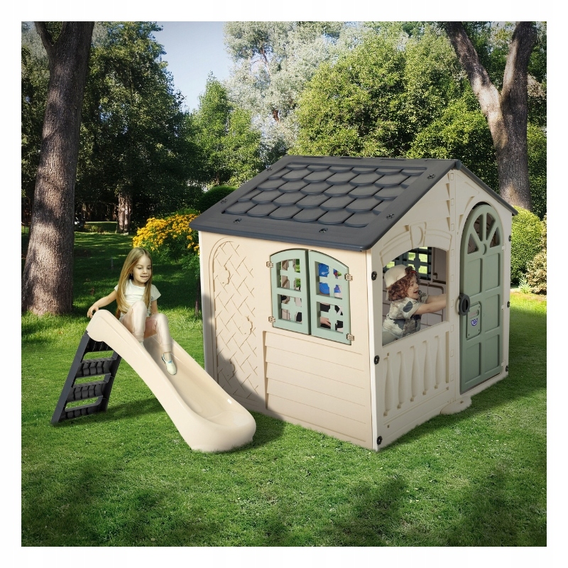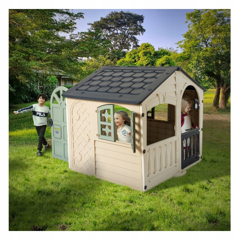Dzięki otwieranym drzwiom i okiennicom domek wygląda jak prawdziwy, co sprawia, że zabawa w nim staje się jeszcze bardziej ekscytująca. Nowoczesna stylistyka I modna, stonowana kolorystyka w odcieniach beżu, grafitu i oliwkowej zieleni dodają mu wyjątkowego charakteru.