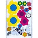 Среди наклеек вы найдете не только красочные цветы для украшения, но и кран или часы.
