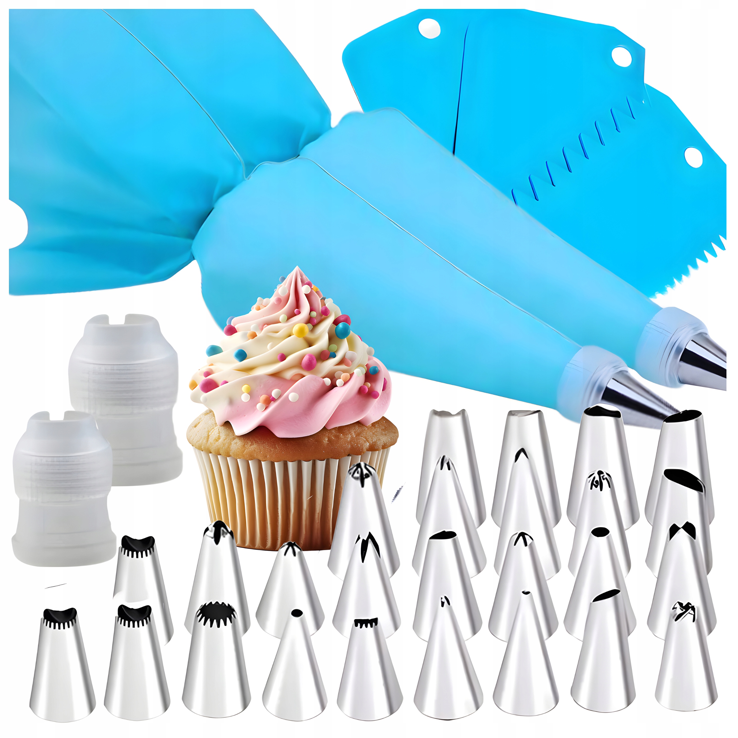 Ten kompletny zestaw do dekoracji wypieków pozwoli Ci nadać Twoim tortom, babeczkom i ciastkom wyjątkowy wygląd. Dzięki wielofunkcyjnym tylkom, wygodnym silikonowym rękawom cukierniczym i praktycznym akcesoriom, osiągniesz rezultaty jak z profesjonalnej cukierni – bez większego wysiłku!✅
