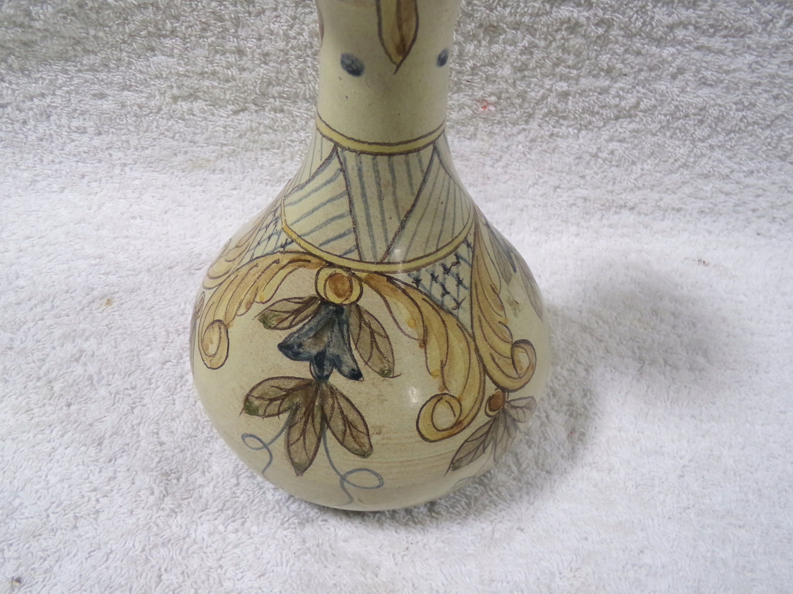 Wazon ceramiczny ręcznie malowany o wysokości 17 cm,ŚREDNICY ŚRODKA 6 cm,średnicy brzucha 11 cm,wadze 0,52 kg.Stan zachowany bardzo dobry,bez uszkodzeń.