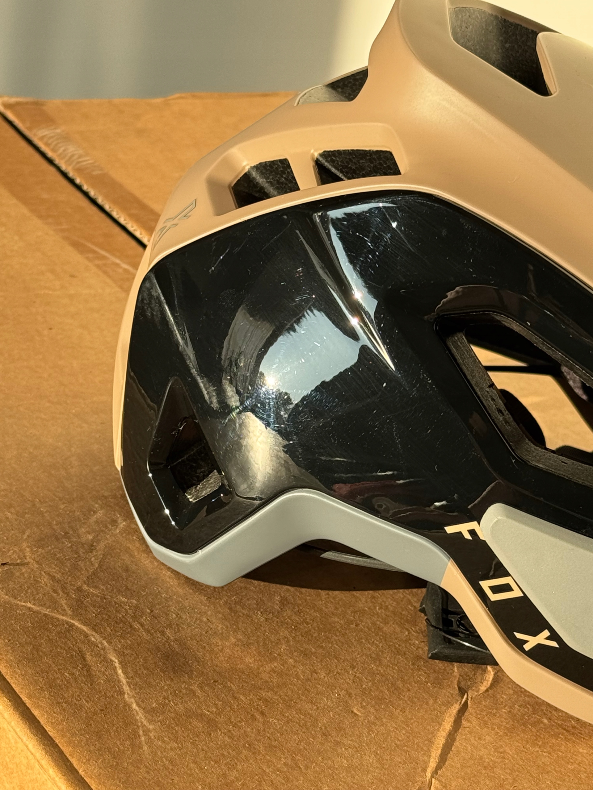 Powystawowy, nieużywany kask rowerowy marki Fox. Kask zarysowany jak na zdjęciu. Brak oryginalnego opakowania i akcesoriów.