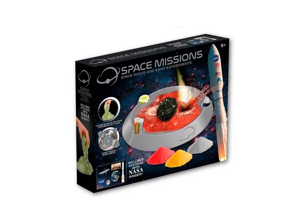 Zestaw umożliwia wcielenie się w rolę naukowca i przeprowadzenie eksperymentów doświadczalnych z kosmicznym piaskiem i kamieniami.