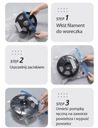 Długotrwałe narażenie włókna na wilgotne powietrze powoduje jego kruchość i problemy z drukowaniem. Worek próżniowy to doskonałe rozwiązanie, które pozwala przechowywać filamenty w próżni, gdy nie są używane.
