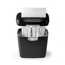 Niszczarka do papieru A4 ma pojemność 10 litrów na zniszczone materiały i jest kompaktowa, dzięki czemu zmieści się pod biurkiem lub na nim.