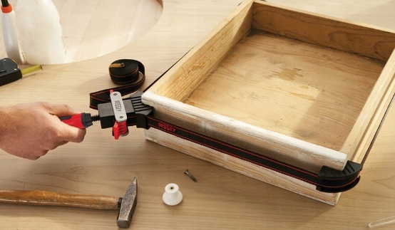 Niezależnie od tego, czy wymagana jest duża siła docisku na ukosach czy bezstopniowe dopasowanie do różnych kątów, praktyczne narożniki Vario z ruchomymi stopkami dociskowymi zwiększają możliwości stosowania ścisku taśmowego BESSEY.