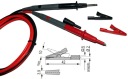 Wysokiej jakości, bardzo elastyczne, silikonowe przewody pomiarowe do multimetrów w podwójnej izolacji odporne na wysoką temperaturę do 200 °C dla pracy ciągłej (przypadkowe dotknięcie rozgrzana lutownicą 400°C nie topi izolacji) ,nie sztywnieją na mrozie do -50 °C.