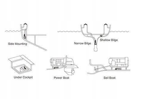 Niskoprofilowa, automatyczna pompa zęzowa idealnie wpasuje się w ciasne, wąskie przestrzenie zęzowe. Automatycznie uruchamia się gdy poziom wody się podnosi oraz wyłącza po odpompowaniu wody. Pompa uruchamia się gdy poziom wody osiągnie 4,5cm oraz zatrzymuje się gdy prąd jest mniejszy niż 2,2A przez 15 sekund. Korpus pompy został zaprojektowany z funkcją obrotu o 360 stopni,dzięki czemu można szybko dopasować dowolny kąt aby spełnić wymagania instalacji. Ukryte otwory w korpusie zapobiegają blokowaniu powietrzna w instalacji wodnej.