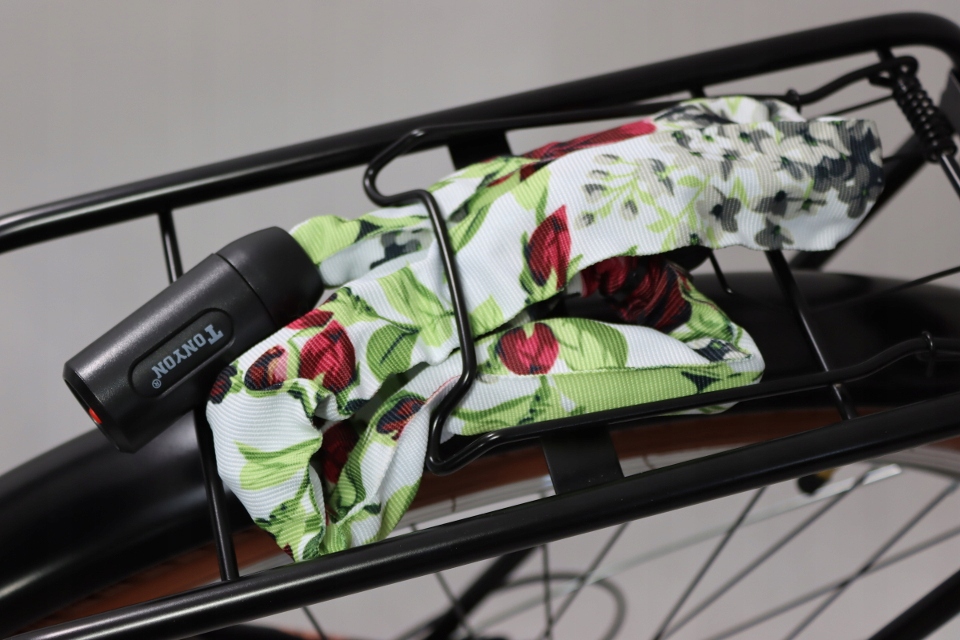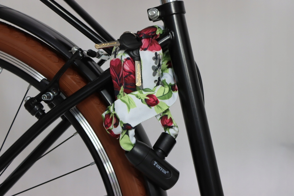 Zapięcie rowerowe na kluczyk z ciekawym printem w kwiaty