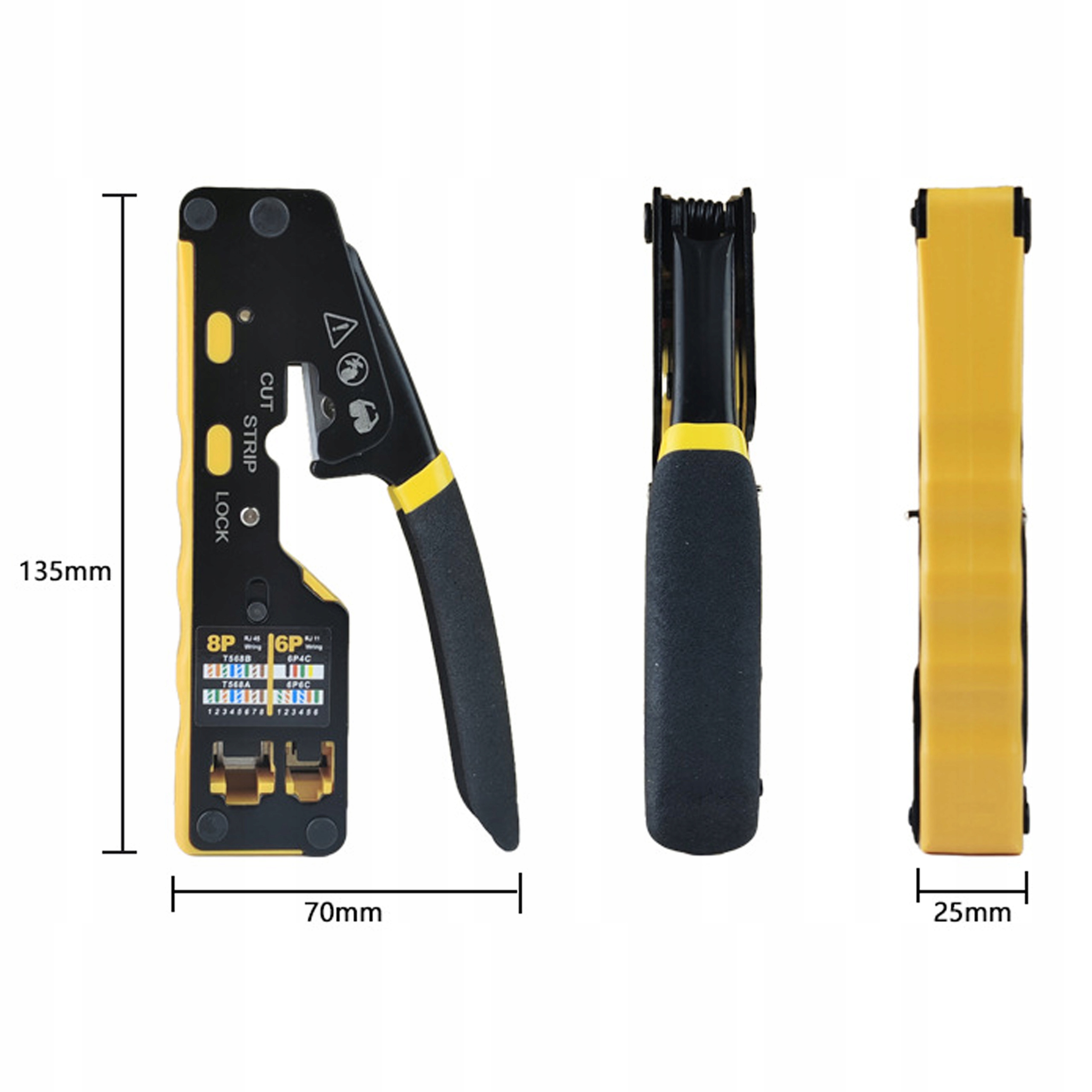 ✅ Bezproblemowe cięcie, zdejmowanie i zaciskanie kabli CAT5, CAT5e i CAT6/6A. Urządzenie obsługuje 6- i 8-pozycyjne złącze modułowe, w tym RJ11/RJ/12 i RJ45 dzięki czemu staje się kompleksowym rozwiązaniem dla różnych potrzeb związanych z zakończeniem kabli.
