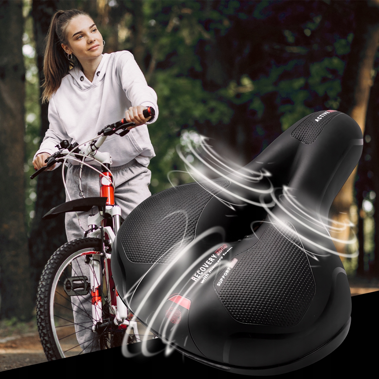 Siodełko wyposażone jest w odblask umieszczony z tyłu, który zwiększa widoczność rowerzysty po zmroku i w trudnych warunkach pogodowych.