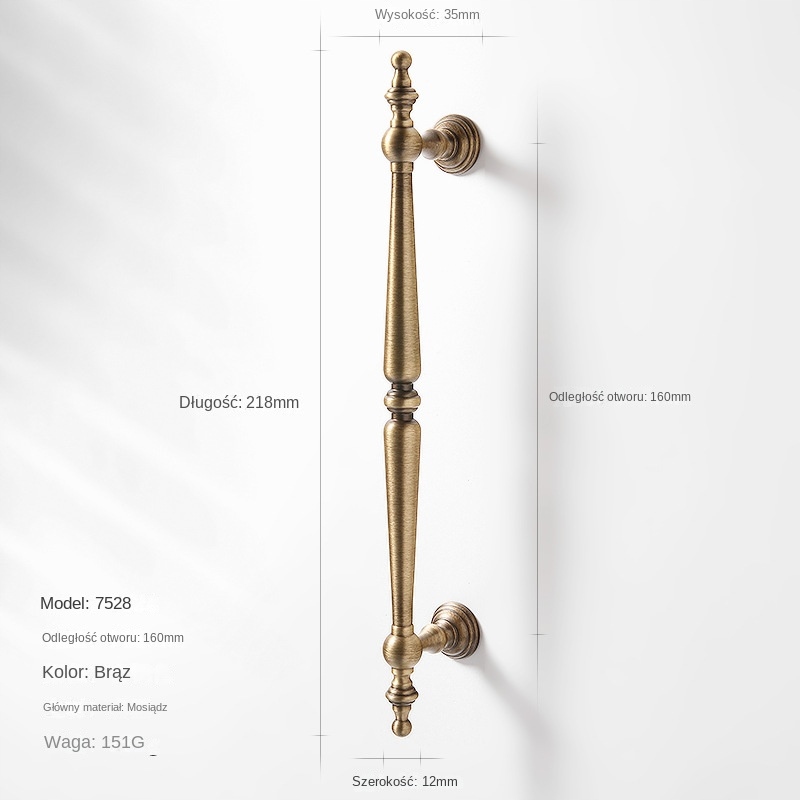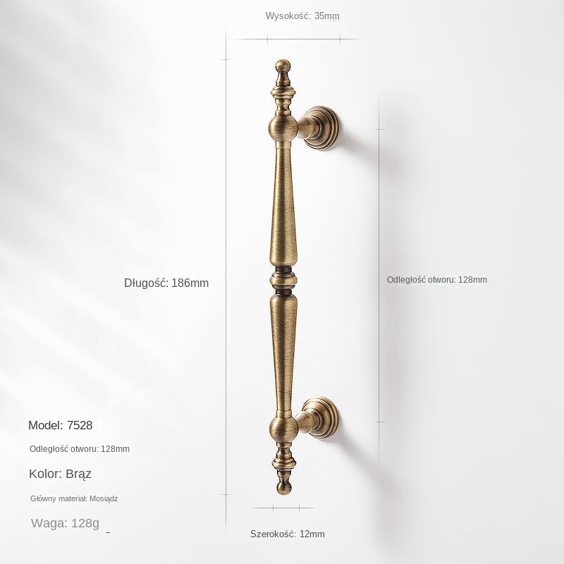 Klasyczna klamka z brązu w szafce w stylu vintage – model 7528