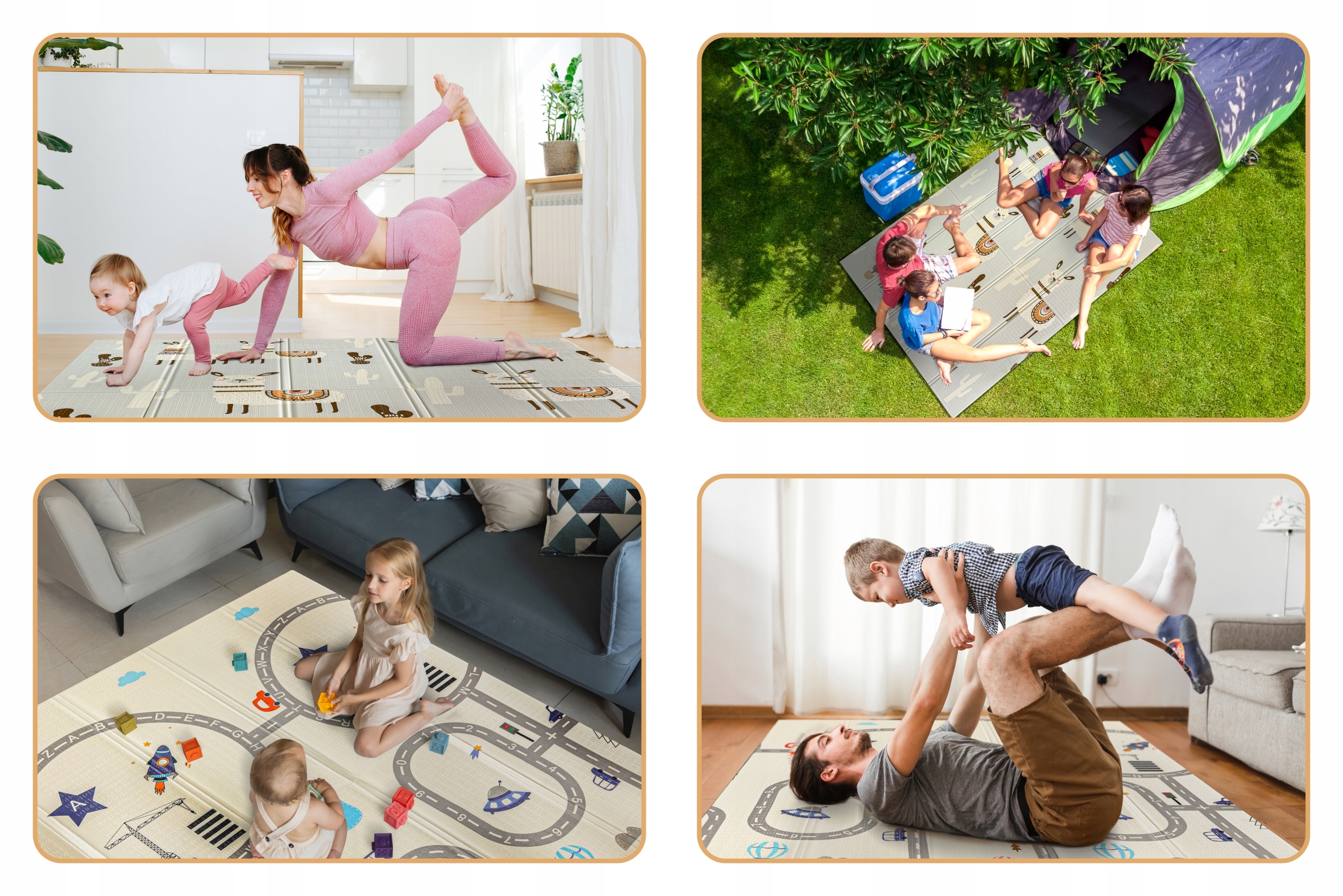 W zestawie znajduje się edukacyjna mata piankowa o grubości 1 cm, która jest doskonała do zabawy i nauki. Mata może być wykorzystywana na różnych etapach rozwoju dziecka, od pierwszych dni życia, poprzez naukę raczkowania, aż po różnorodne zabawy i ćwiczenia fizyczne. Dzięki kompaktowemu rozmiarowi i możliwości składania, jest praktyczna w przechowywaniu i łatwa w transporcie, co sprawia, że jest idealna zarówno do użytku w domu, jak i na zewnątrz.