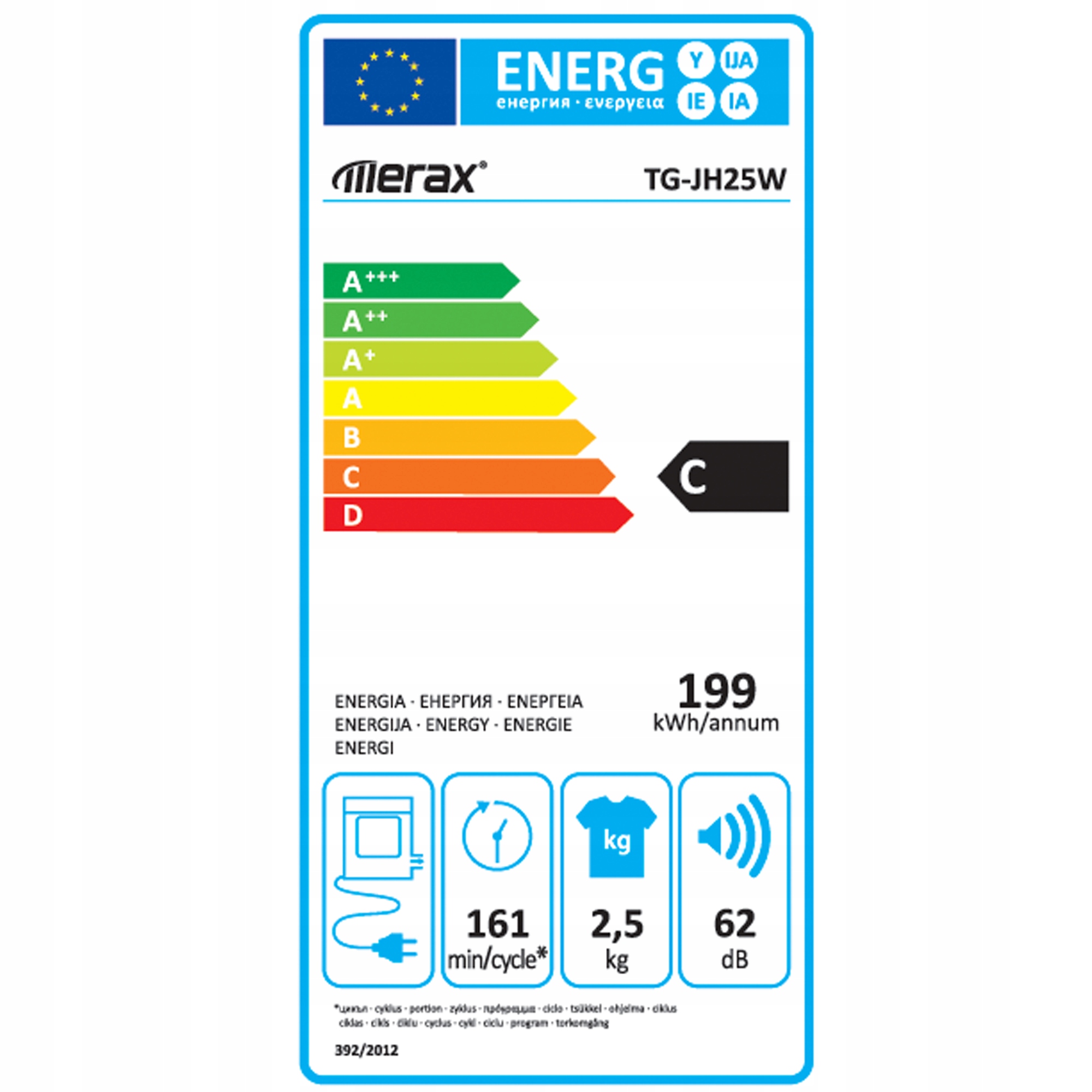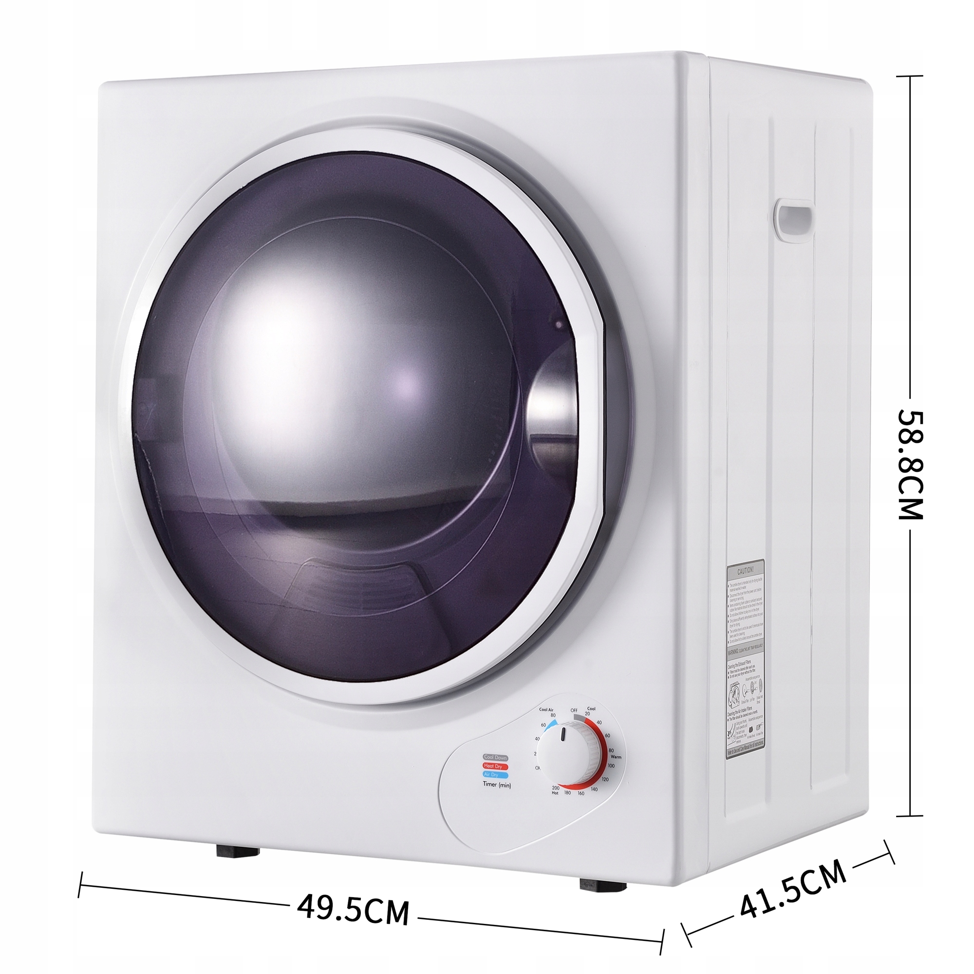 Suszarka wentylacyjna o pojemności 2,5 kg, montaż na ścianie, 200-minutowy timer, podwójny filtr, grzałka ceramiczna PTC, bęben ze stali nierdzewnej, zabezpieczenie przed przegrzaniem, temperatura suszenia 65°C