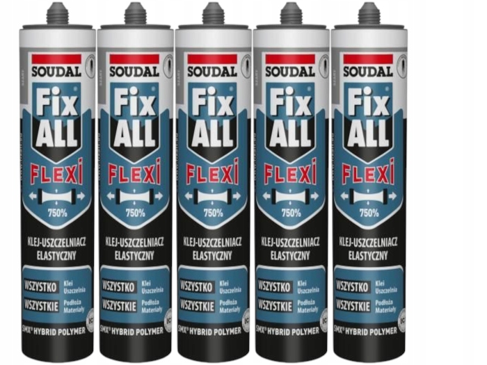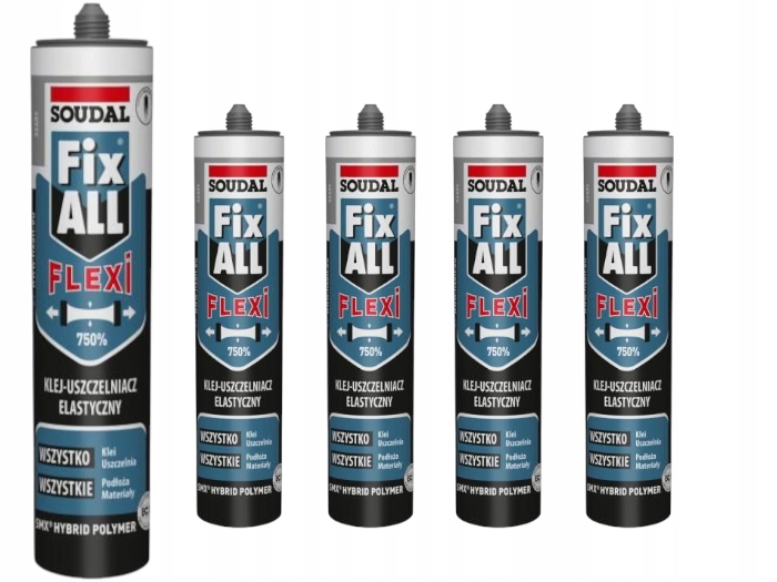 5 x KLEJ HYBRYDOWY MOCNY FIX ALL FLEXI SZARY MONTAŻOWY 290 ML SOUDAL