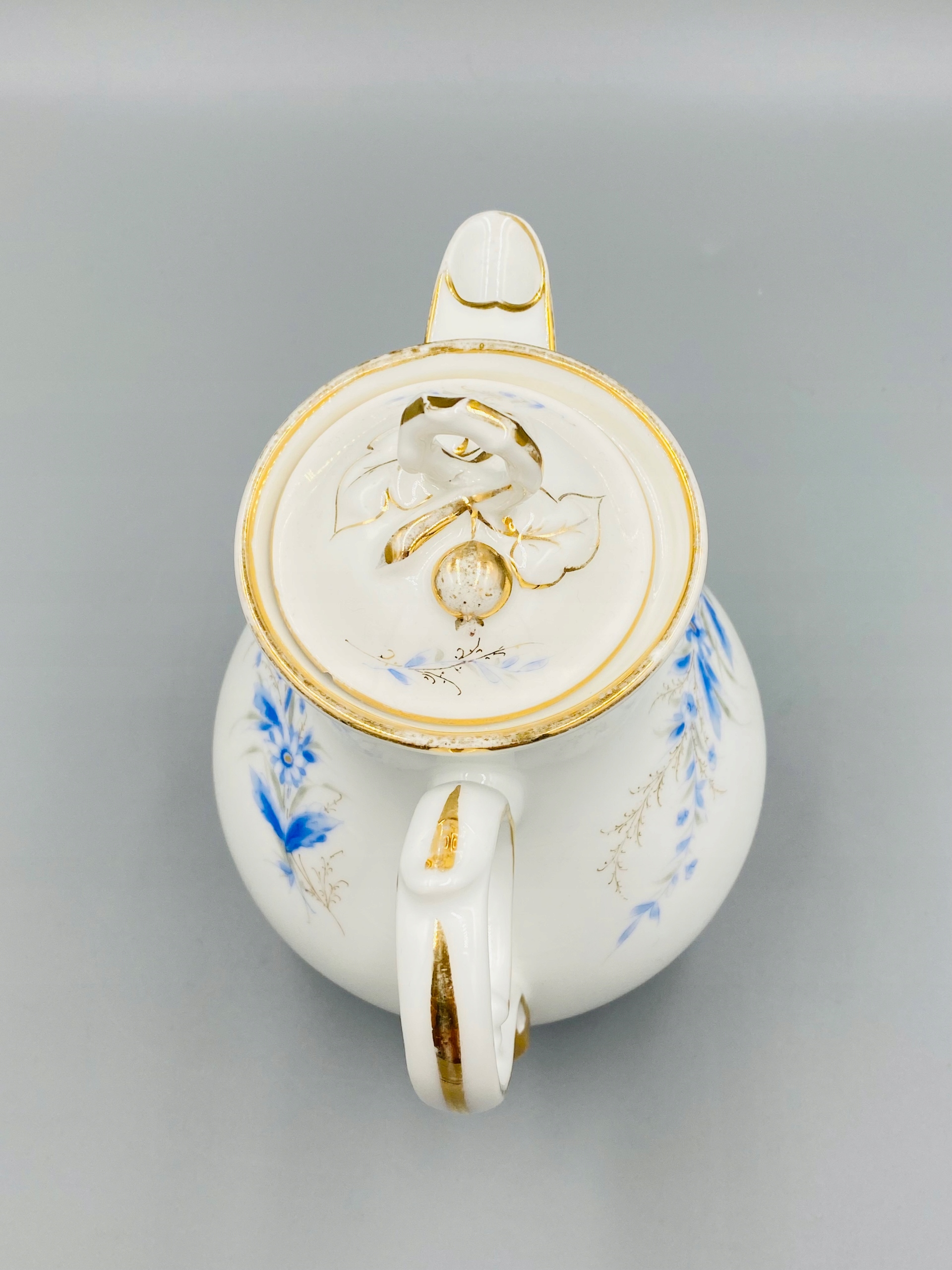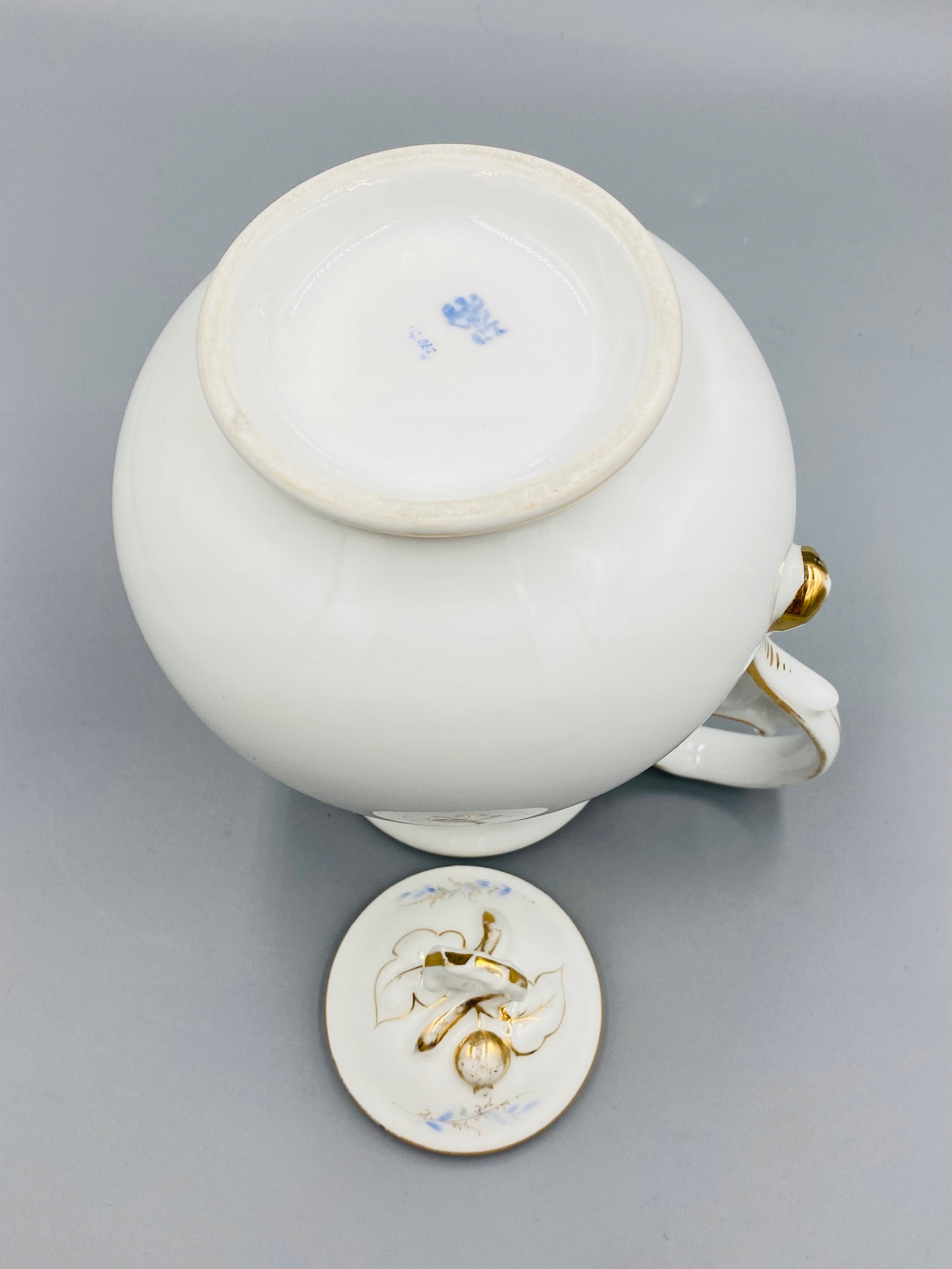 Sygnatura: "Niebieski orzeł C.T. z berłem", z śląskiej manufaktury Carla Tielscha z Altwasser ( Stary Zdrój) , stosowana od 1875 r. Sygnatury widoczne na ostatnim zdjęciu.