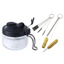 Szklany pojemnik z plastikową zakrętką przeznaczony do czyszczenia i przedmuchiwania aerografu po każdym użyciu. Specjalny filtr w zakrętce zatrzymuje zanieczyszczenia i zapobiega wydostawaniu się płynu czyszczącego. Pojemnik wyposażono w uchwyt na aerograf, ułatwiający pracę.