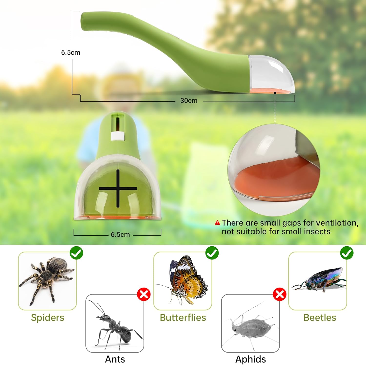 Zestaw 2 sztuk łapaczy owadów to idealne rozwiązanie do łapania i obserwowania motyli, chrząszczy czy pająków – bez ich krzywdzenia i bez chemikaliów. Doskonały do domu, ogrodu oraz edukacyjnej zabawy z dziećmi.