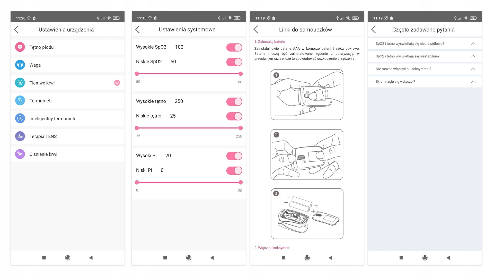 Gdy opcja alertu jest włączona, a zmierzone wartości nasycenia krwi tlenem i częstości tętna przekroczą górny lub dolny limit, pulsoksymetr wyemituje sygnał dźwiękowy. ), Dodatkowo możnaustawić górny i dolny limit alarmu dla SpO2 i tętna.