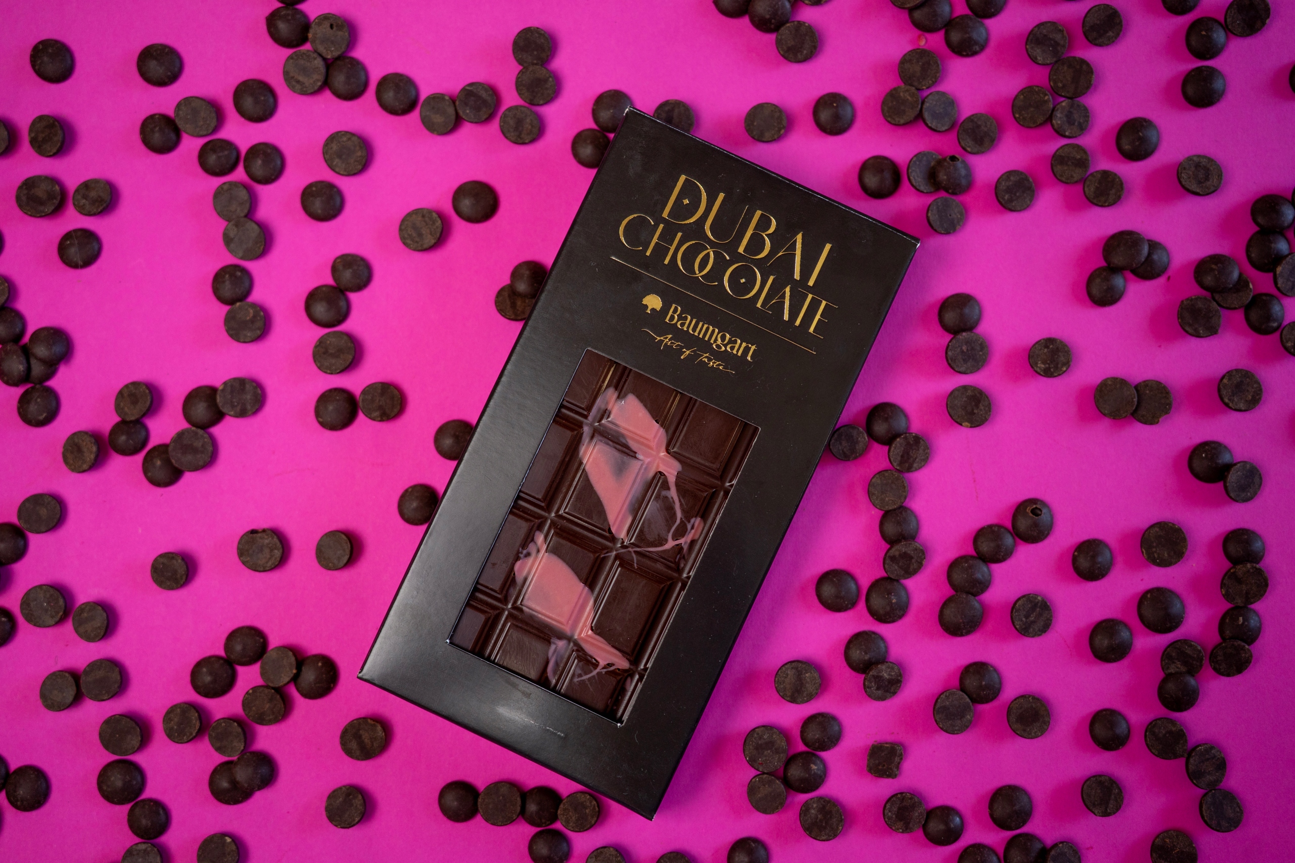 Tym razem jednak klasykę zastąpiliśmy nowoczesnym podejściem do słodyczy – łącząc intensywną czekoladę deserową (64,5% kakao) z owocowym nadzieniem malinowym, czekoladą ruby, a przede wszystkim – chrupiącym, złocistym ciastem kataifi, które nawiązuje do tradycyjnych orientalnych deserów. To właśnie ono sprawia, że tabliczka zyskuje wyjątkową teksturę i charakterystyczny „dubajski” sznyt.