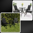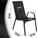 Krzesła zapewniają wsparcie dla pleców i rąk, co gwarantuje wygodny relaks na świeżym powietrzu.