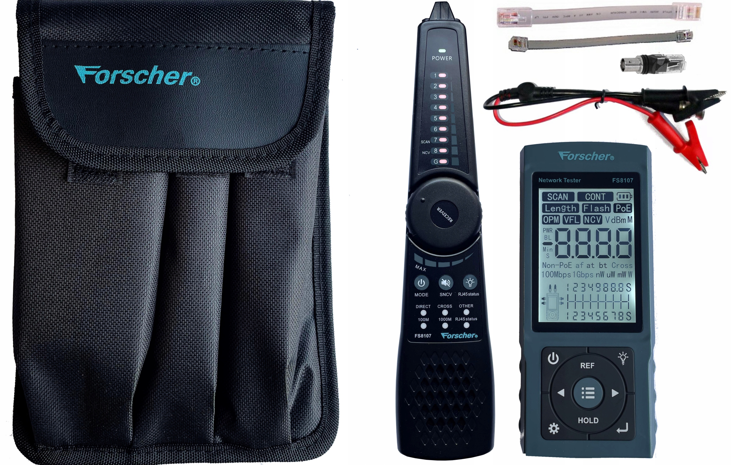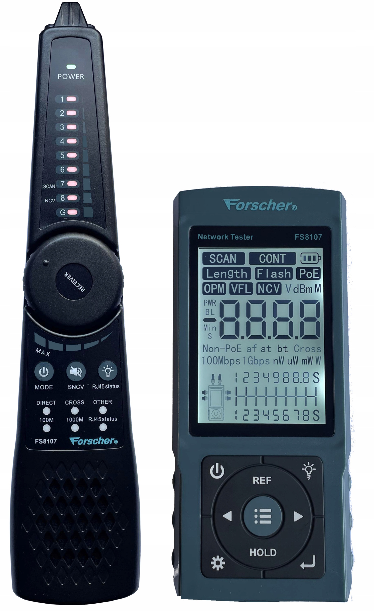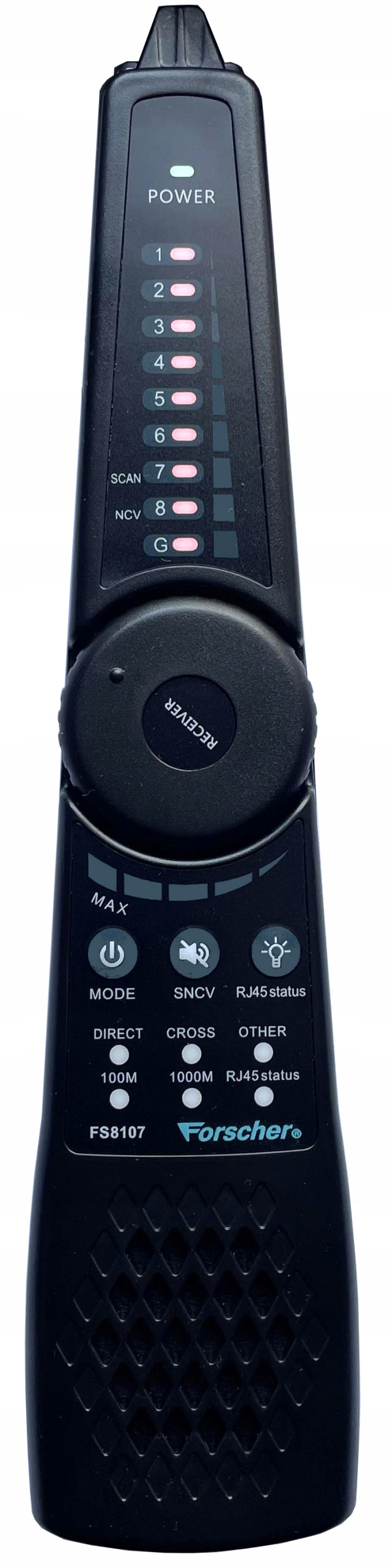 -Wielofunkcyjna Sonda - Poza funkcją szukania przewodów , przy pomocy samej sondy można wykonać test połączenia oraz sekwencji przewodów oraz pomiar obecności i sposobu podłączenia napięć PoE