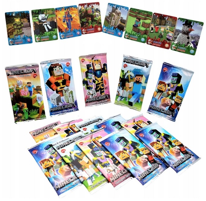 ✔️ Połyskujące karty z ulubionymi postaciami kultowej serii Minecraft